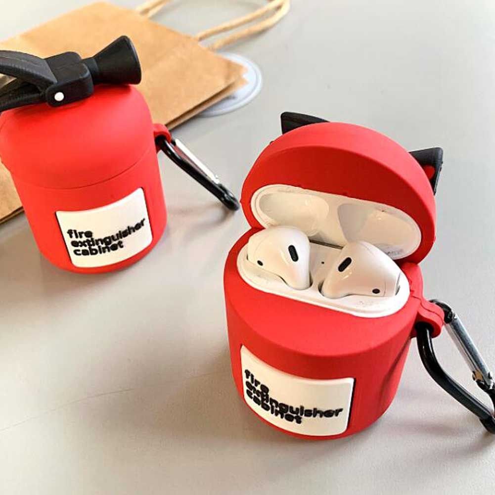 Red Fire Extinguisher Headset Case Silicone Wireless Earbuds Headphones Case Bluetooth Headset Case Earphone Protection Soft Case