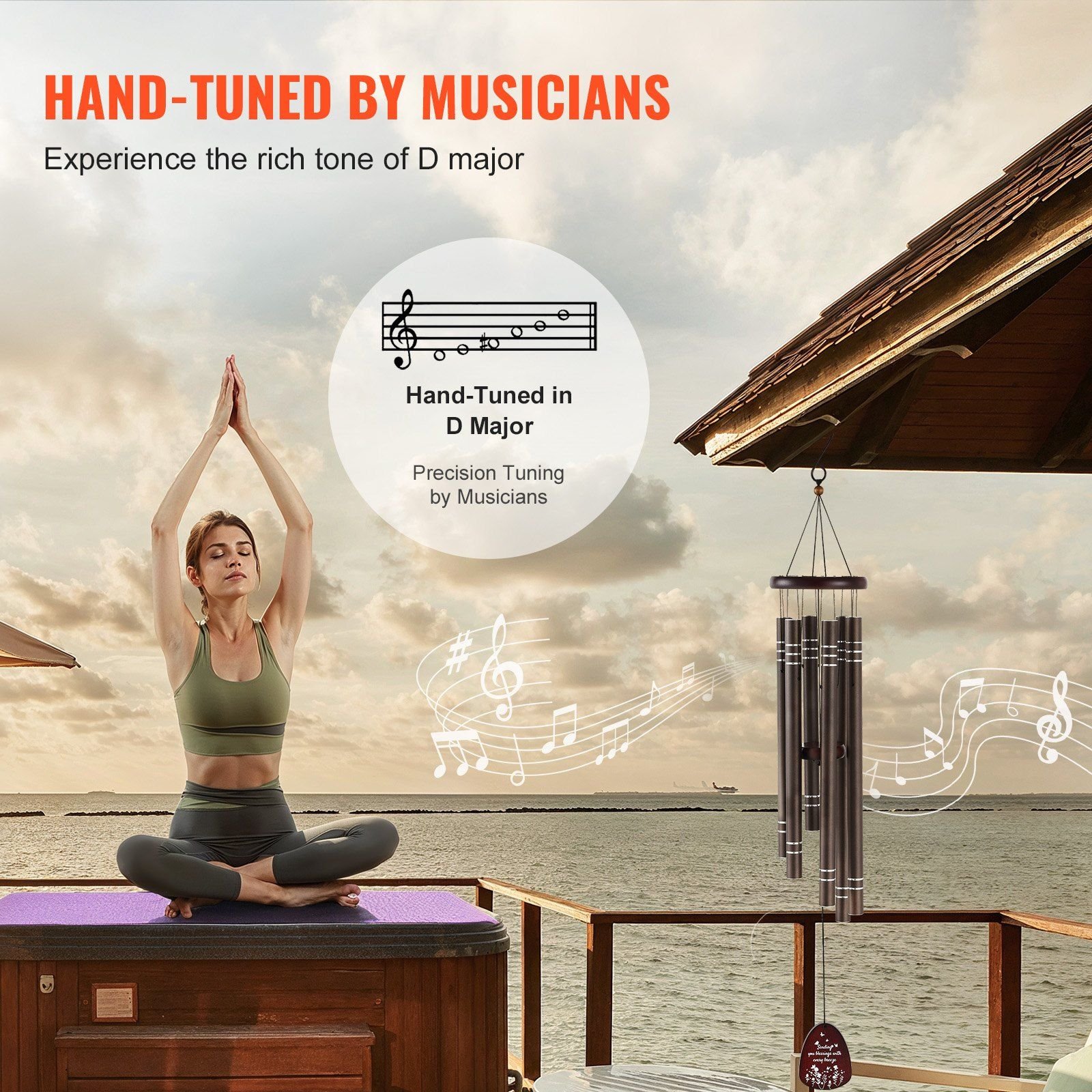 2.Hand-Tuned by Musicians: Deep tone wind chimes are expertly hand-tuned to ensure pristine sound quality. The melodious tones they emit, akin to the soft murmur of the wind, foster a sense of calm and provide a therapeutic effect on the mind.