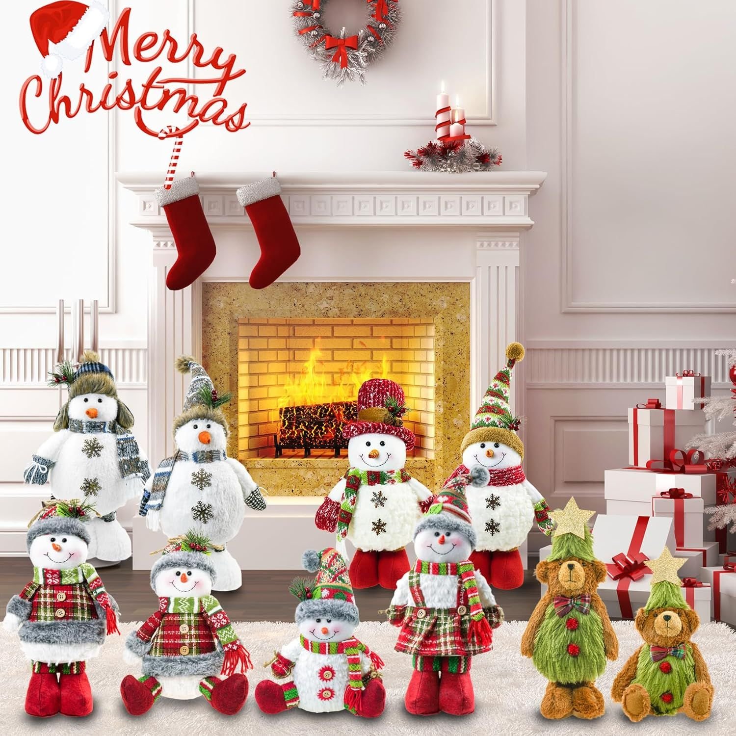 Cute Christmas Decor: Our plush snowman family is a festive addition to your holiday decor. Measuring is 11" x 5" x 13" respectively, it's perfect for display on any tabletop or fireplace mantel. Plus, the sandbag base ensures it sits securely.Superior Quality: Made from soft, high-quality fabric, this snowman is generously stuffed to maintain its shape beautifully. Its expert craftsmanship ensures a beautiful and durable design.Charming Details: Each snowman features a unique knitted hat, scarf, and gloves, along with a carrot-shaped nose and adorable pinecone belly. The cute design adds to the whimsical holiday spirit.Versatile Use: These snowman family make a perfect addition to any home, bedroom, or office desk. Use them to create a cozy and festive atmosphere during the holidays or beyond.Perfect Gift: Surprise your loved ones with the perfect Christmas present! Our snowman plush dolls make for ideal holiday gifts that are sure to delight and spread joy during the winter season.