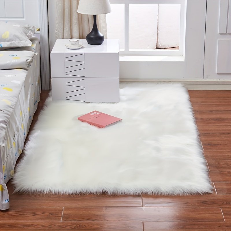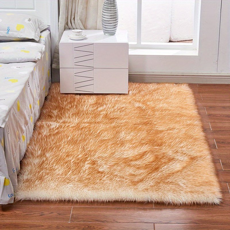 Home > 1pc Fluffy Imitation Wool Area Rug, Suede Fleece Bottom Long Imitation Wool Rug, Acrylic 80% Polyester 20%, 2.36inch Long Wool