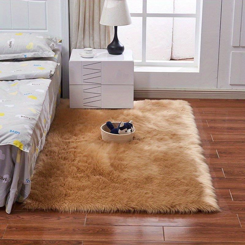 Home > 1pc Fluffy Imitation Wool Area Rug, Suede Fleece Bottom Long Imitation Wool Rug, Acrylic 80% Polyester 20%, 2.36inch Long Wool