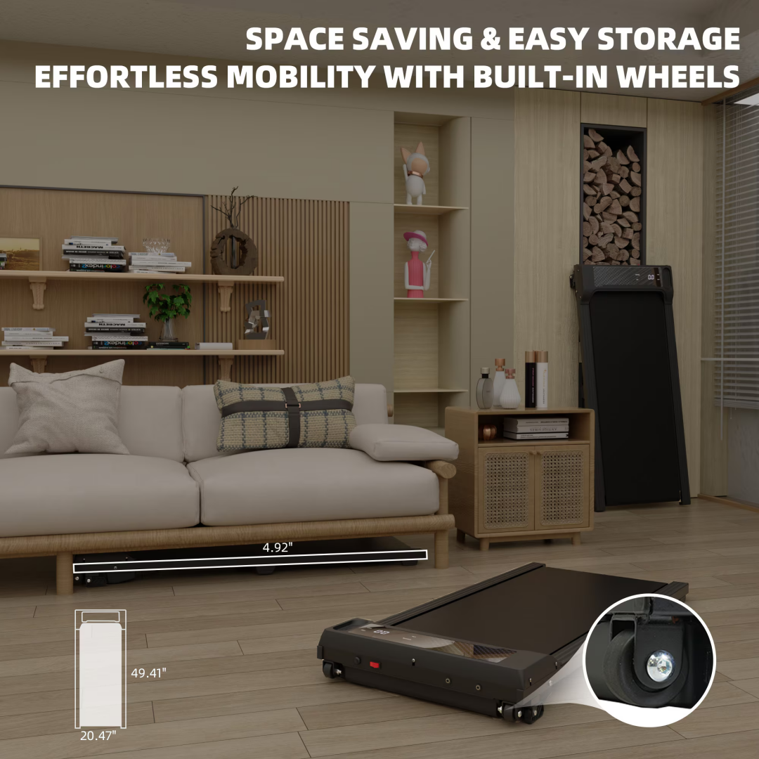 ✅ Lightweight & Space-Saving Design – Compact and portable, easy to move and store. Perfect for small spaces at home or in the office, whether as a home treadmill or an under-desk walking pad.