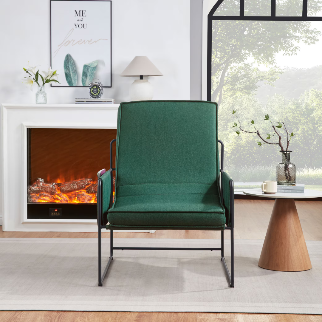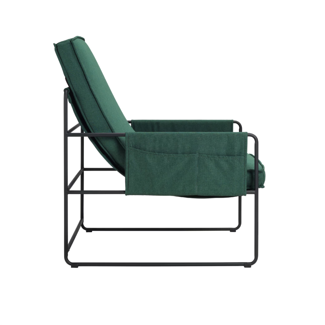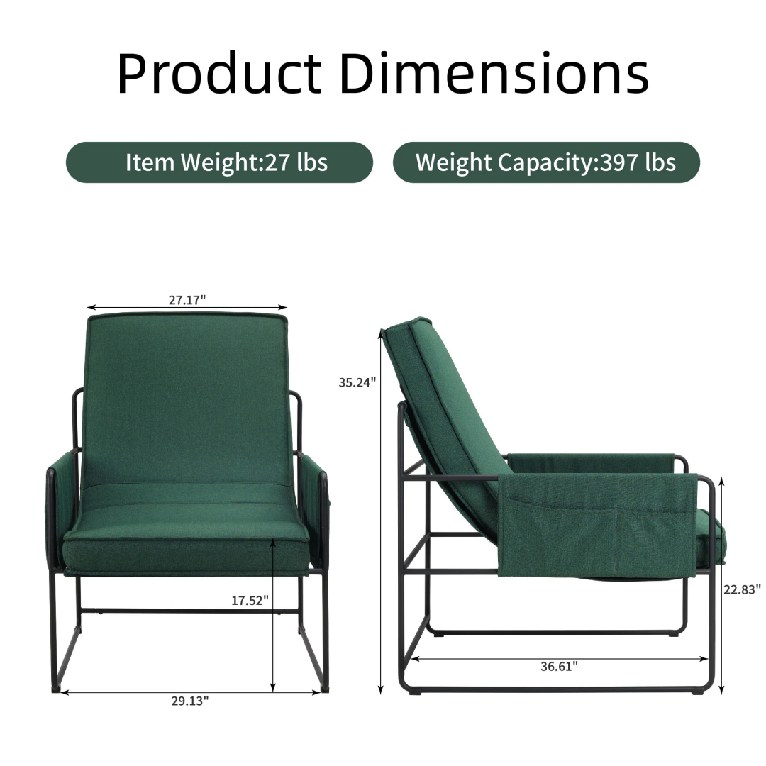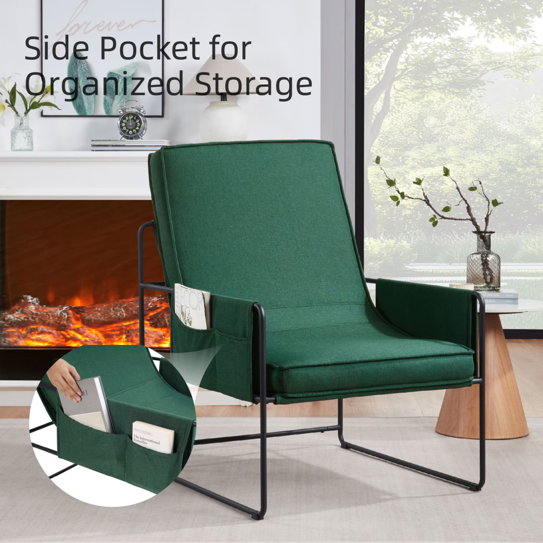 Product Name: Sling Accent Chair, Comfy Chair with Removable Cushion, Vanity Chair, with Storage Bag for Living Room, Room Chair for Living Room, Bedroom, Office, Green