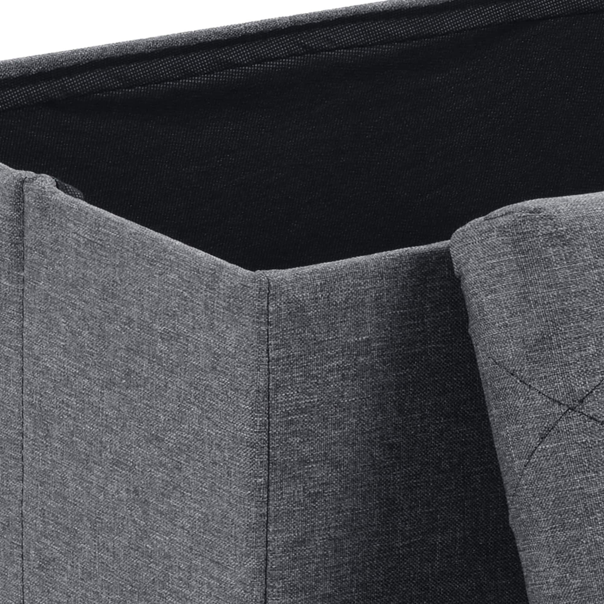 ã€Premium Comfort & Style】: Padded with thick sponge and wrapped in soft Linen fabric for a cozy seat, paired with sleek gray tones to match any decor. Traditional-style tufts create a unique fascination, making this folding storage bench an real eye-catcher no matter where it is placed.