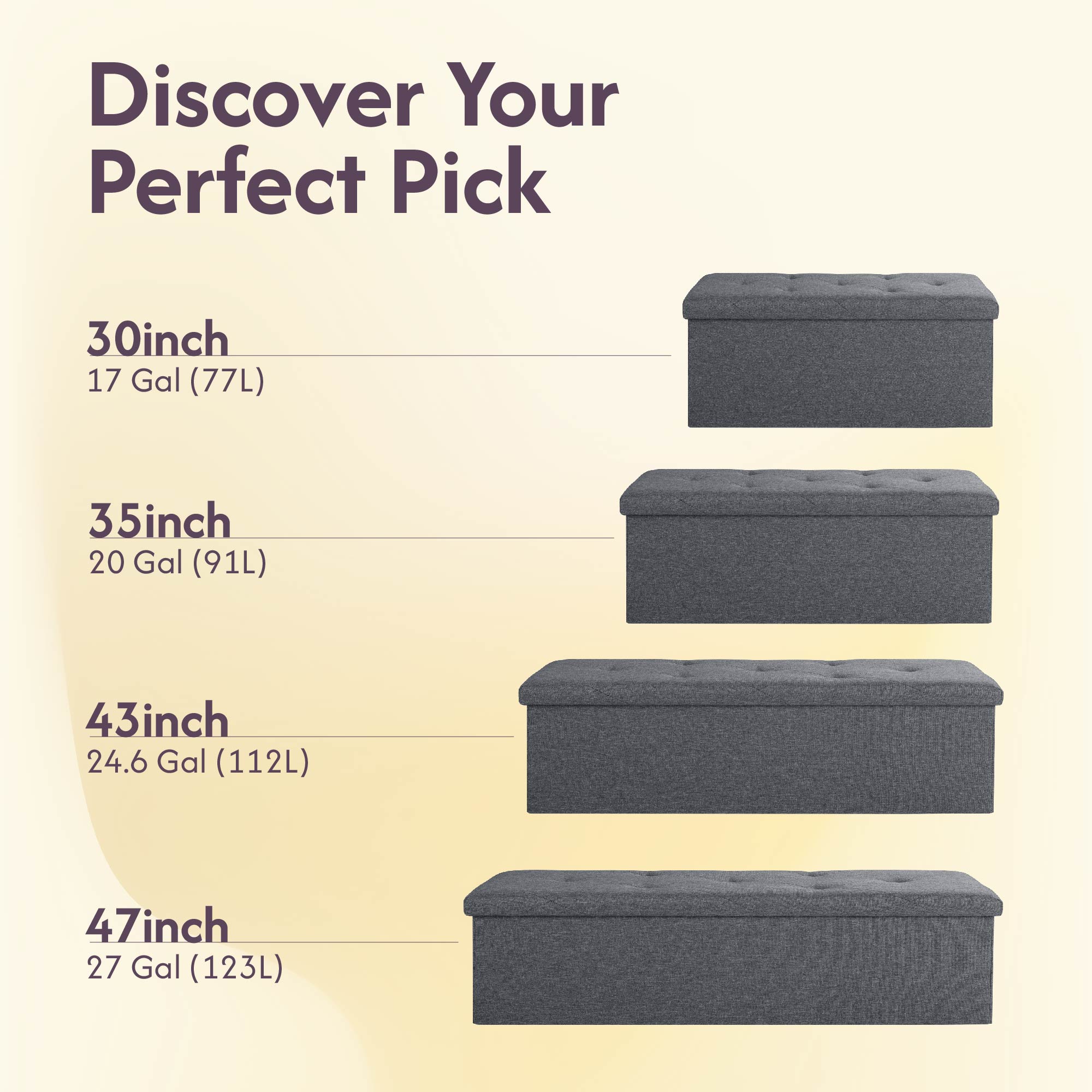 ã€Versatile Functions】: This folding storage bench is not just a storage box and a footstool, it can even serve as a makeshift table for use. You can easily place it in any corner you like, whether it's in your living room, bedroom, hallway, or under a window. Multiple sizes for you to choose from, suitable for different occasions.