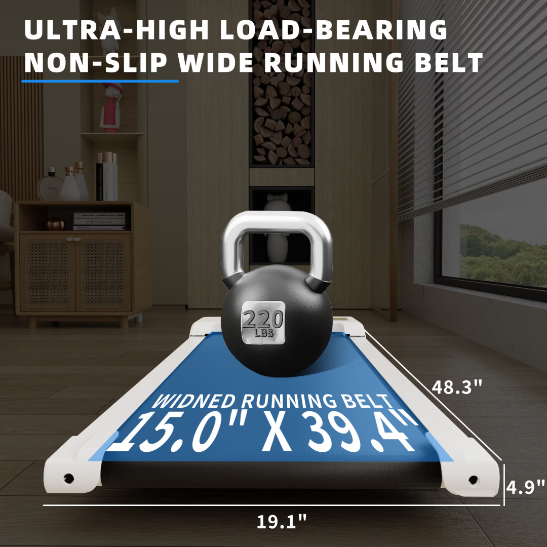 Spacious Running Area and Robust Weight Capacity for a Comfortable Workout Experience With a running area of 40.6 x 14.96 inches, the treadmill provides ample space for a comfortable workout, without feeling confined. Whether you’re walking slowly or at a brisker pace, the large running area ensures each step is natural and unrestricted. Additionally, the treadmill supports a maximum weight of 220 lbs, making it suitable for users of various body types. Whether young or old, this treadmill offers a safe and comfortable workout environment, allowing users to exercise confidently and without concern.