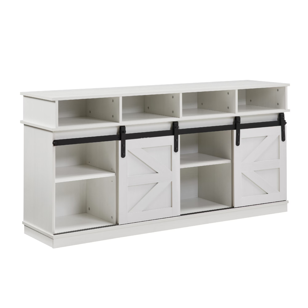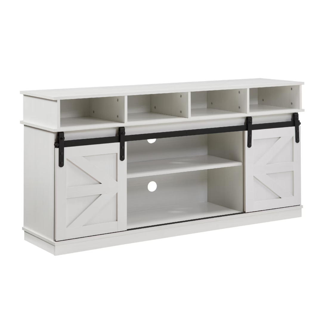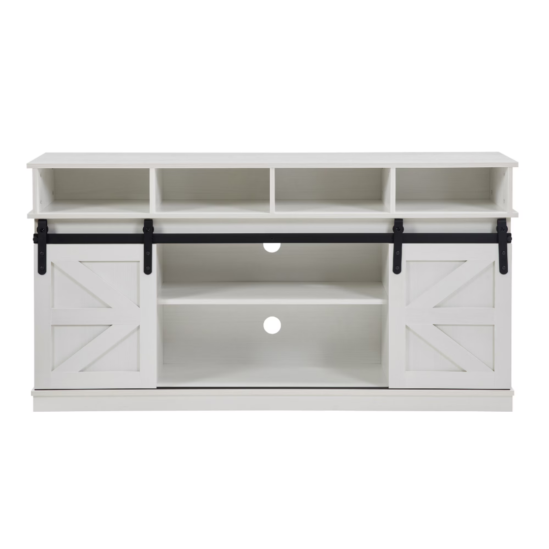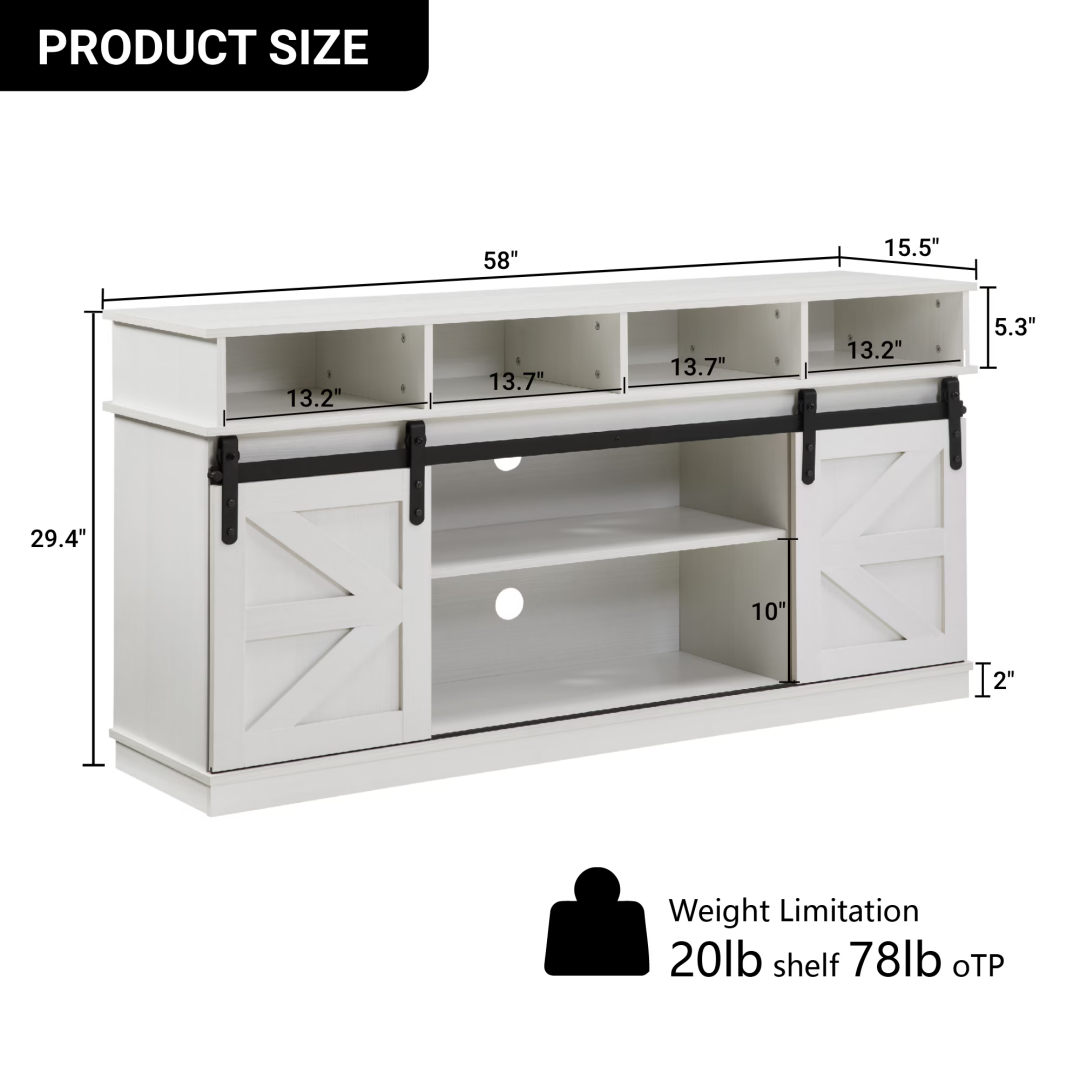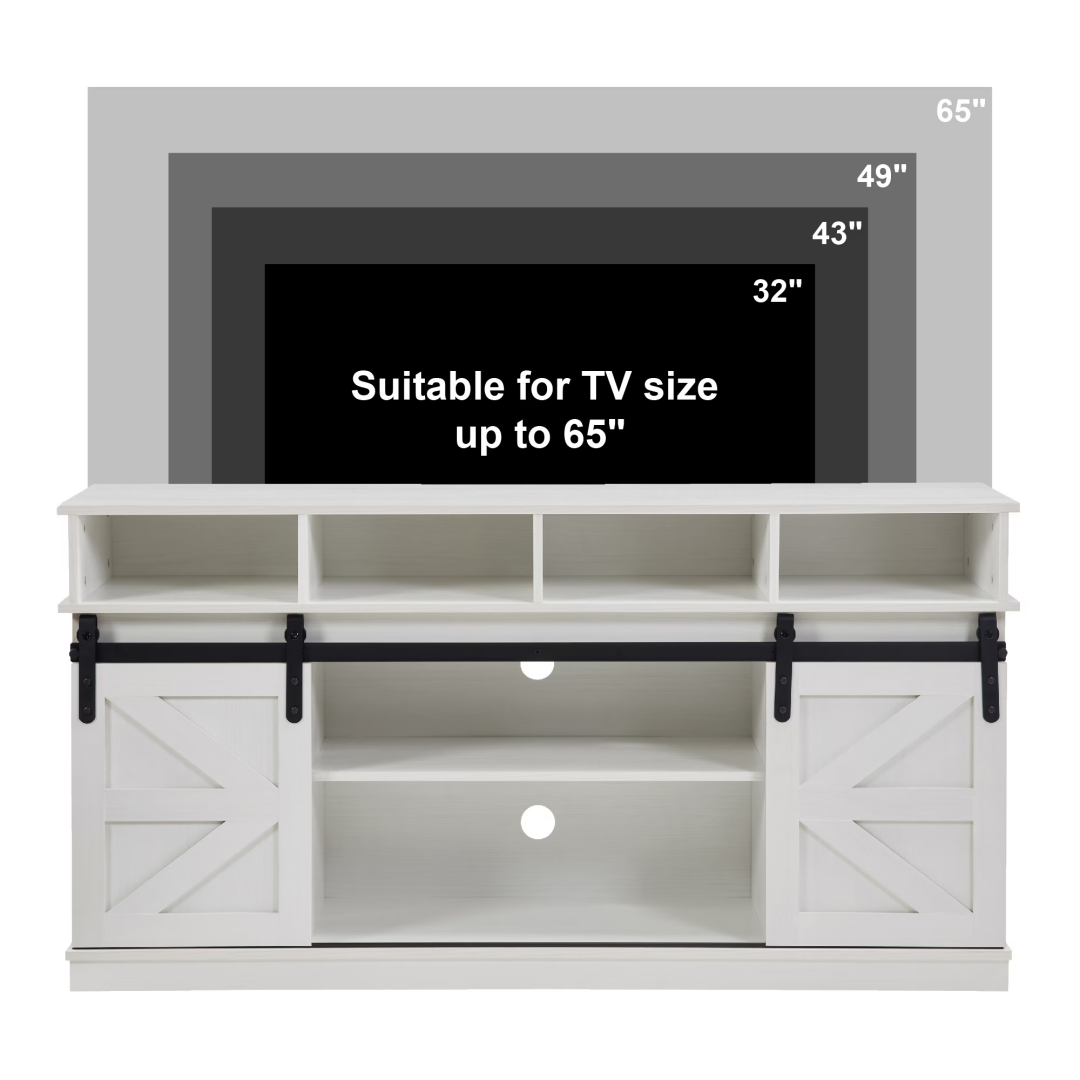 Product Name: TV Stand Sliding Barn Door Modern&Farmhouse Wood Entertainment Center, Storage Cabinet Table Living Room with Adjustable Shelves for TVs Up to 65",White