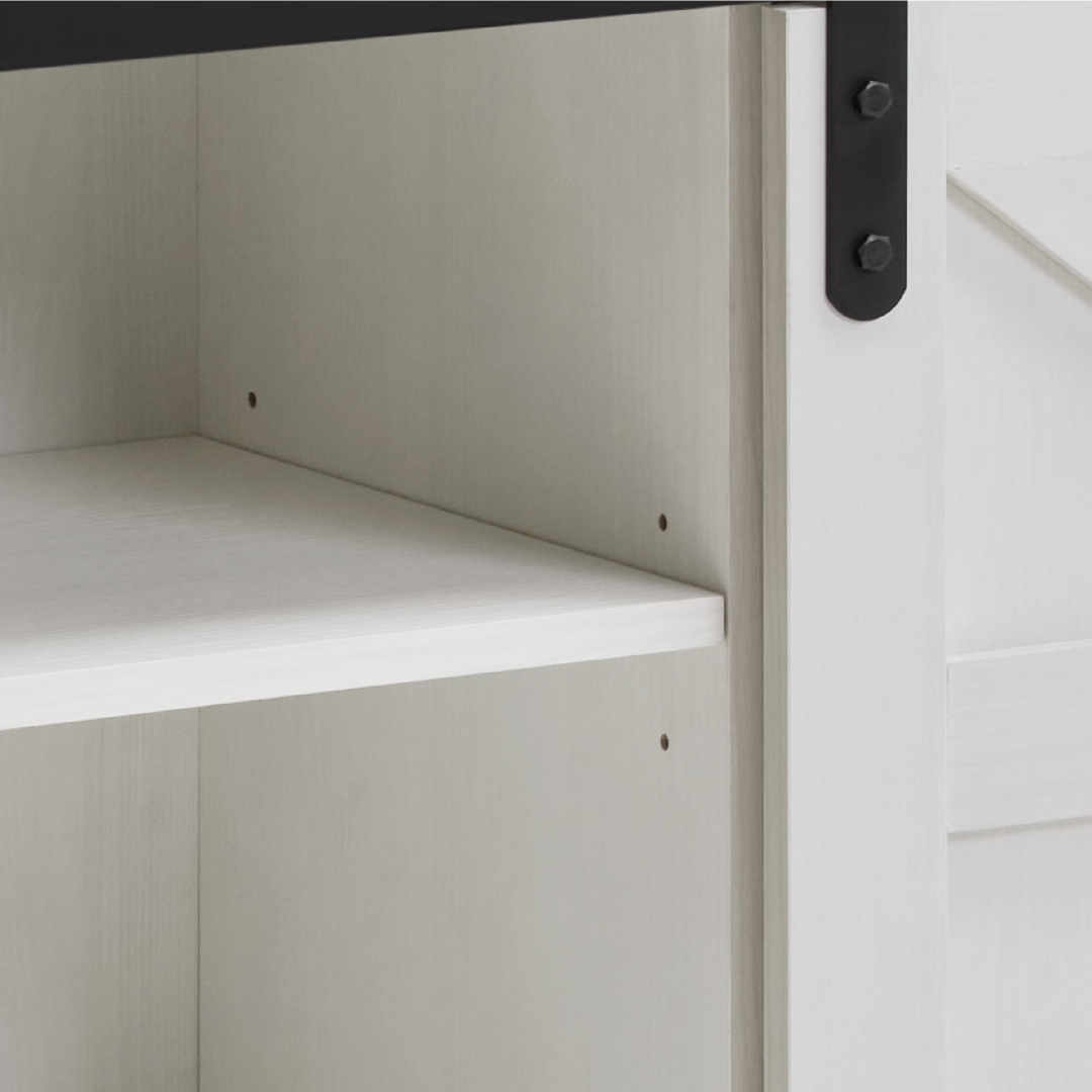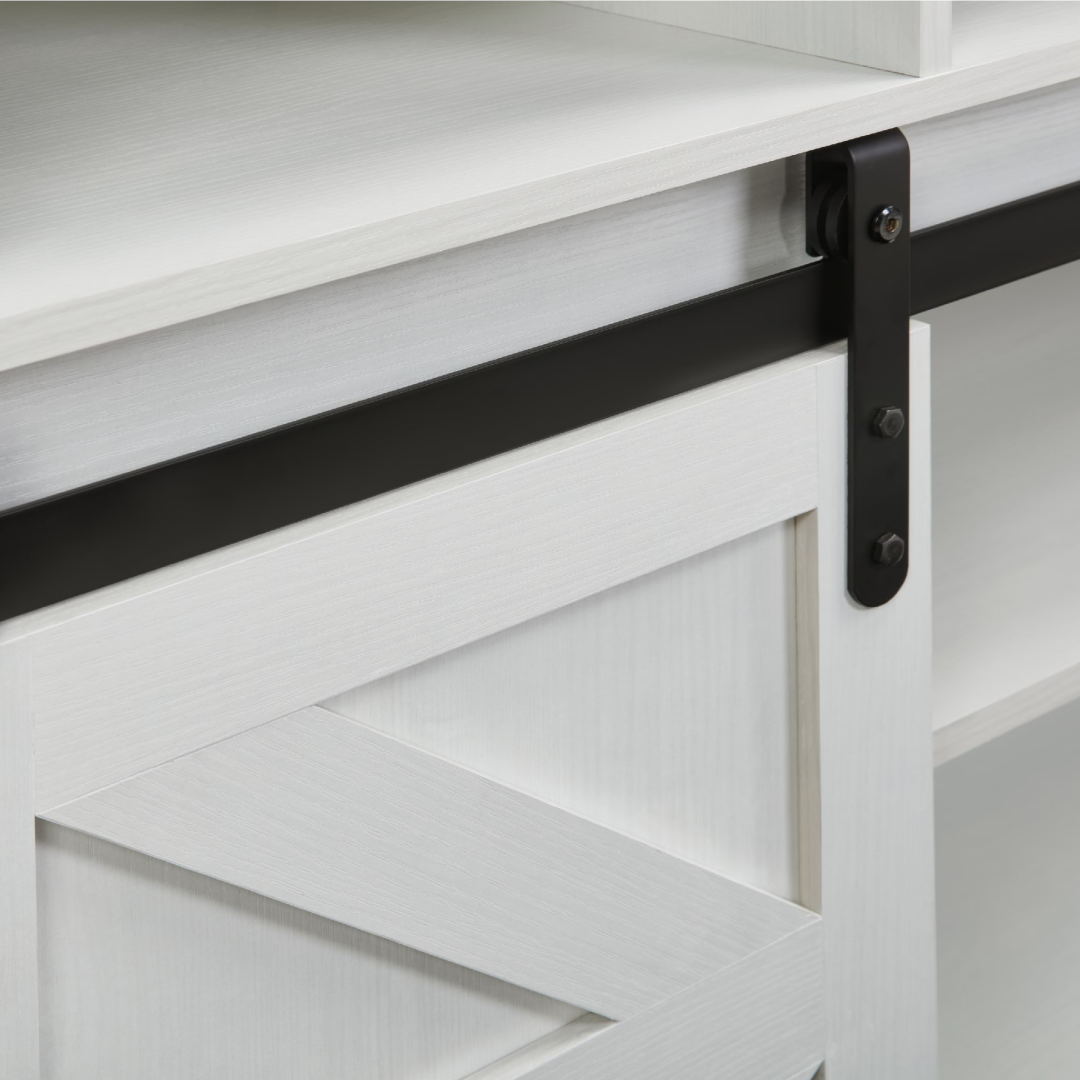 ã€Flexible Barn Doors, Neat and Private】: Equipped with two flexibly movable barn doors, which can not only ingeniously hide the side storage cabinets or the central cabinet, keeping the space always tidy and orderly, but also effectively protect your privacy. The support of the metal slide rails makes the doors slide smoothly and quietly.