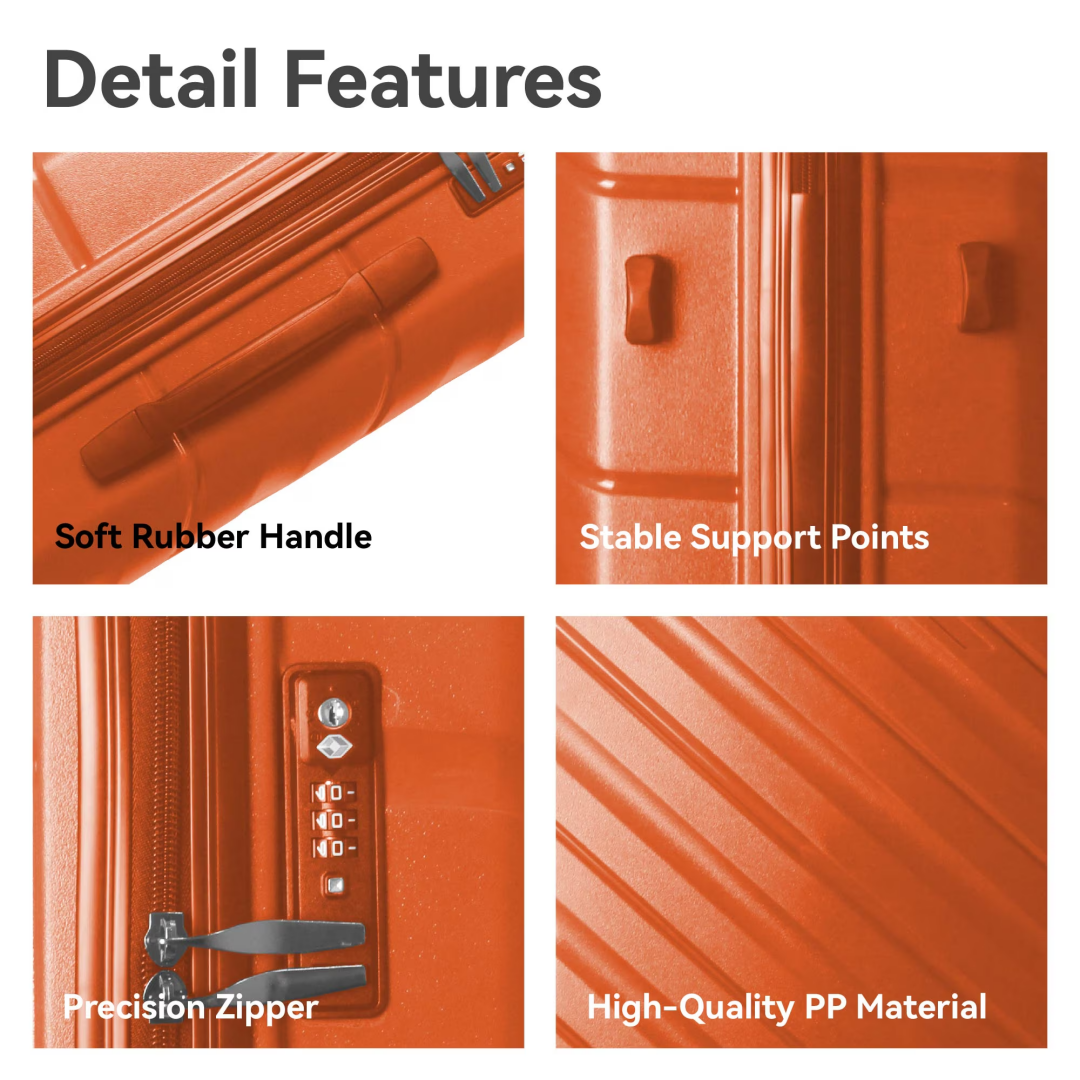 Product Name: 3-Piece Luggage Sets (20", 24", 28"), Suitcase with Wheels, Hardside Suitcase With Four Spinner Wheels and Scratch-Resistant Surface, Orange