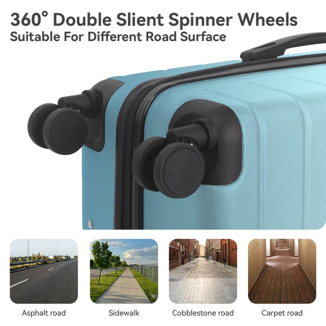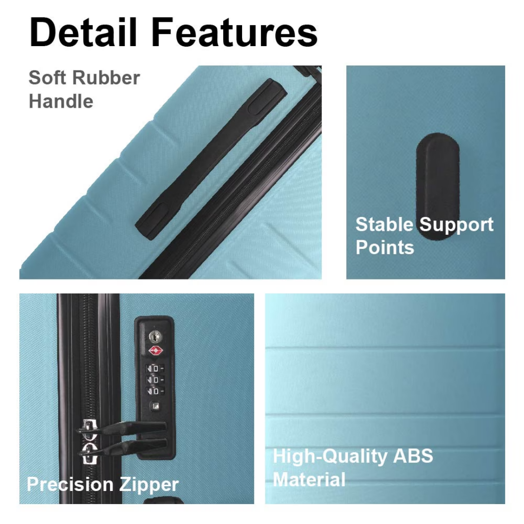 Premium Luggage Set: Made from 100% durable ABS, this hardshell set is impact-resistant and features a sleek, textured finish that resists scratches, keeping your luggage looking fresh trip after trip.
