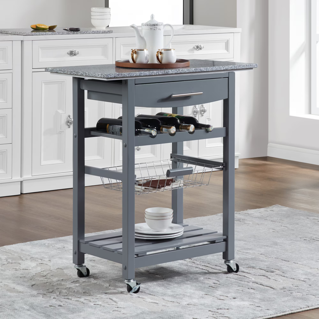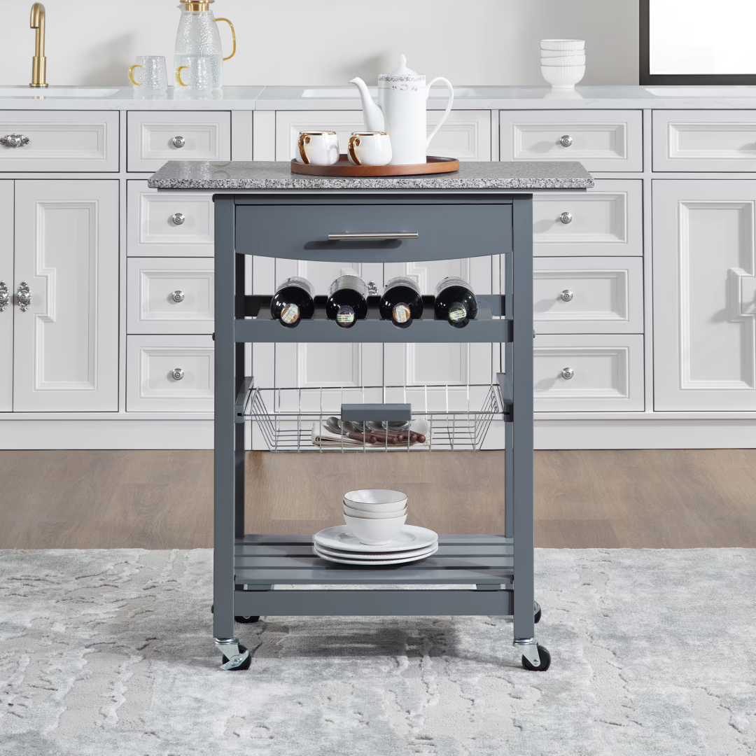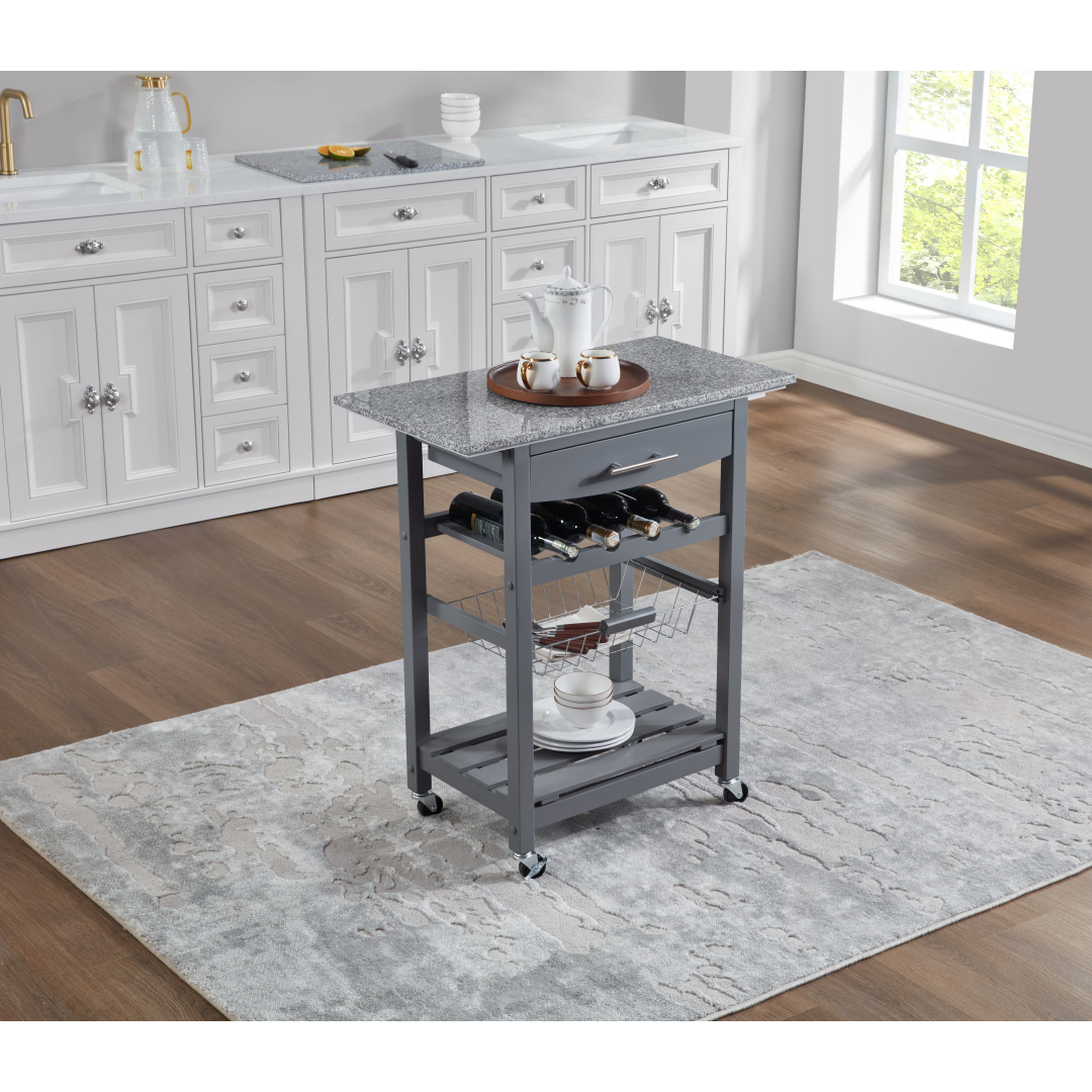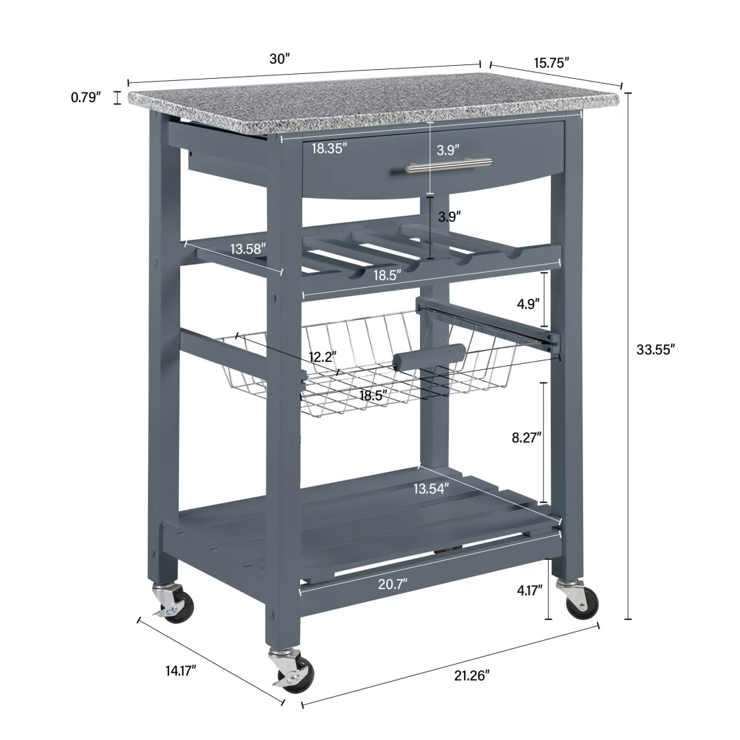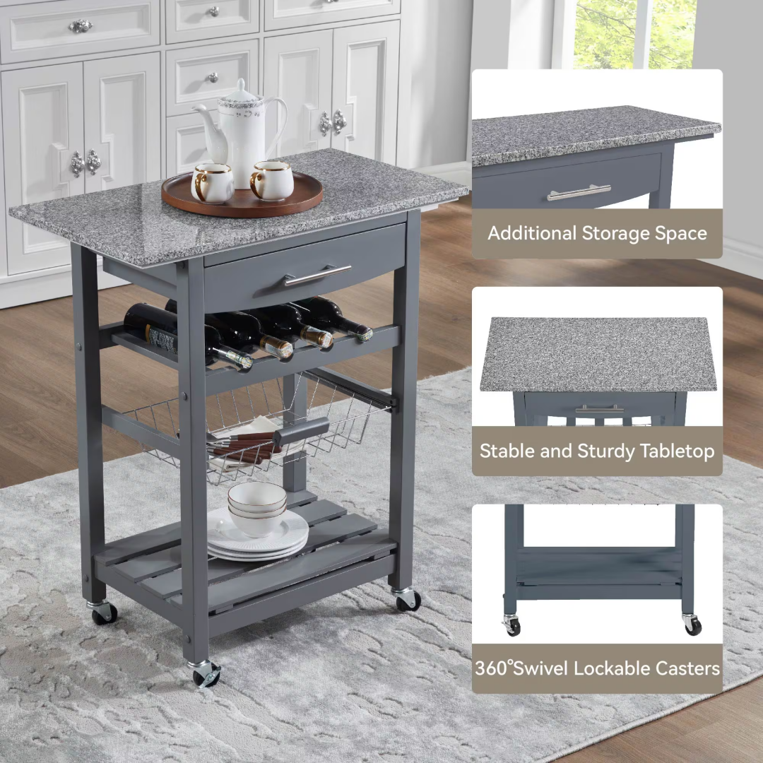 Product Name: Mobile Rolling Kitchen Island Trolley Serving Cart with Underneath Drawer & Slide-Out Wire Storage Basket