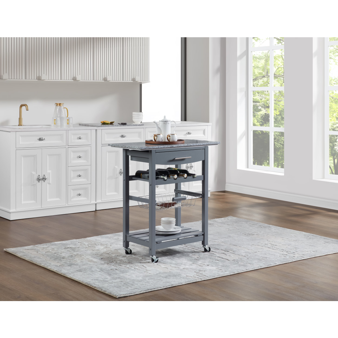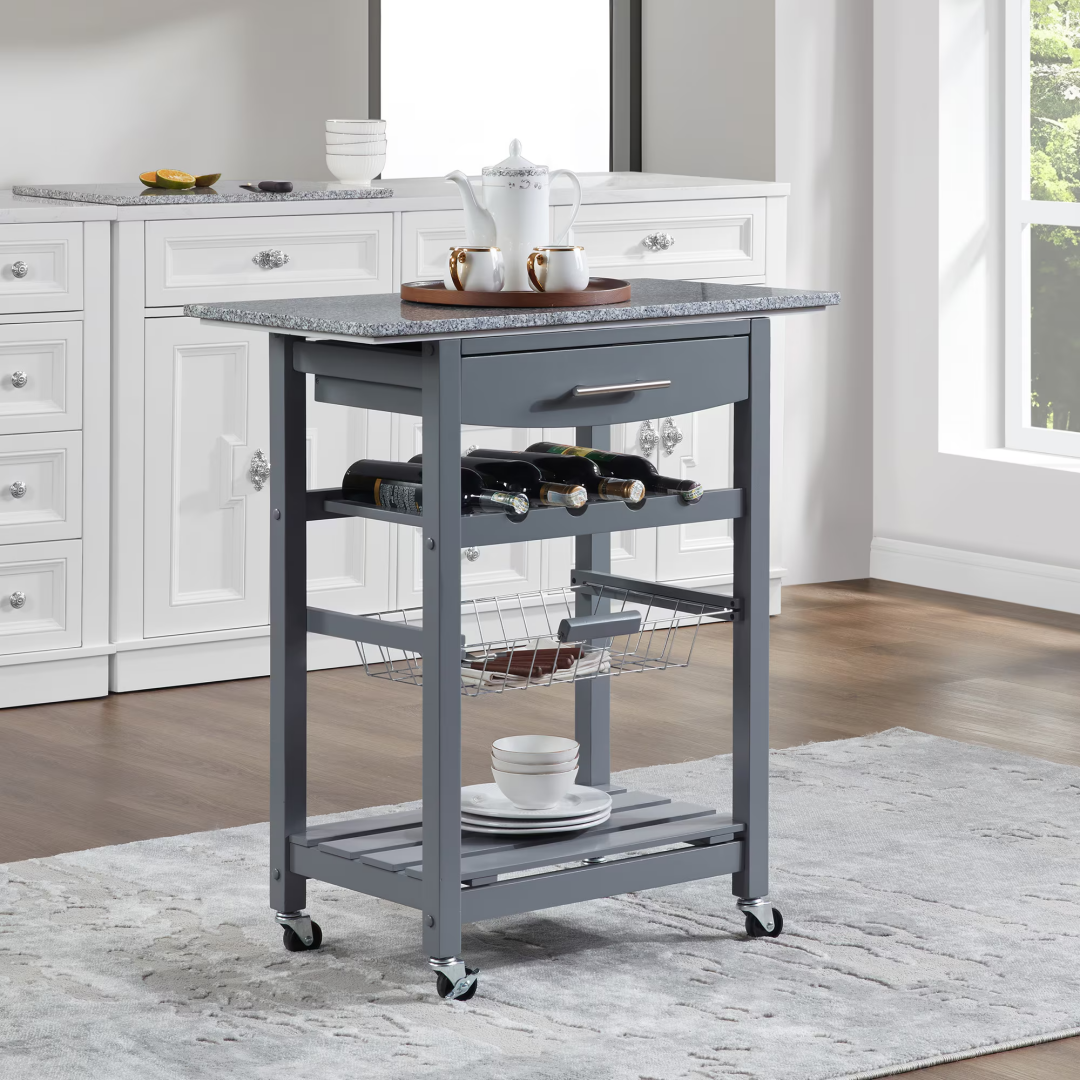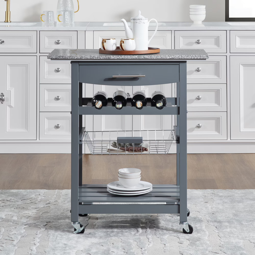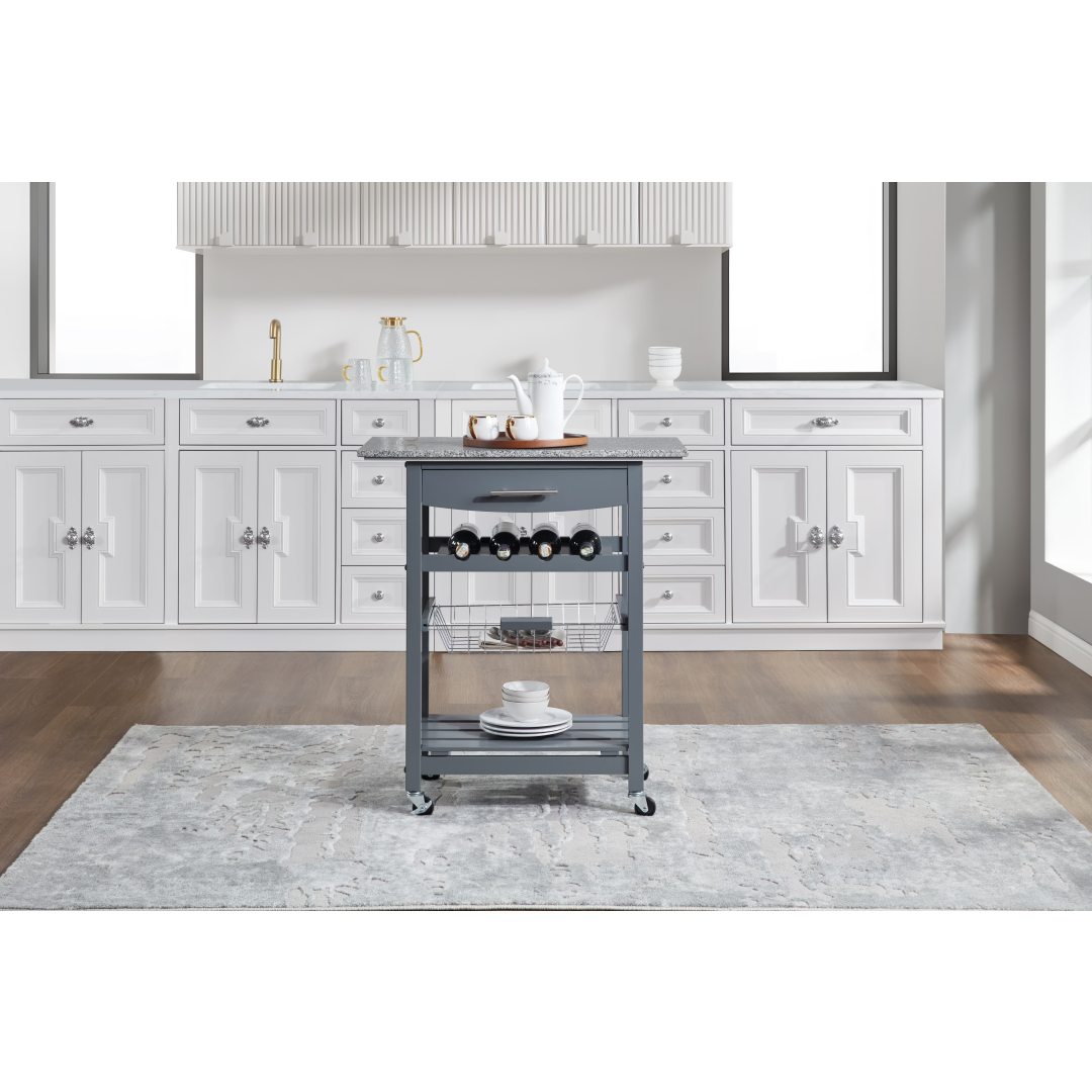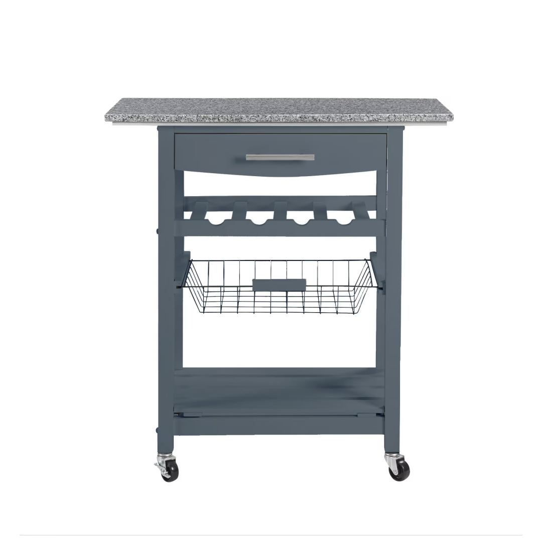 Product Name: Mobile Rolling Kitchen Island Trolley Serving Cart with Underneath Drawer & Slide-Out Wire Storage Basket