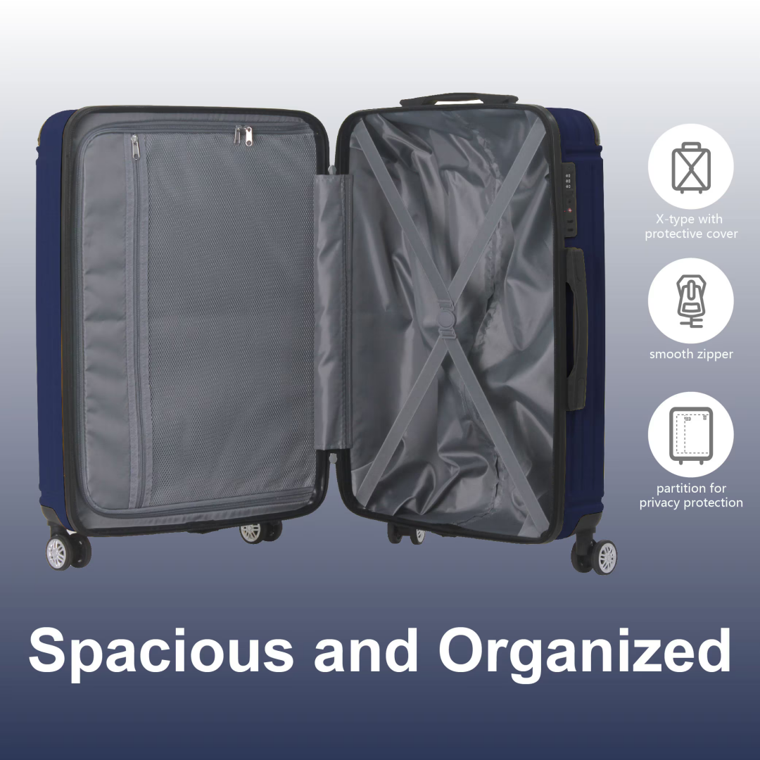 Product Name: Blue 3-Piece Premium ABS Luggage Set-20", 24", and 28" Suitcases with Multi-Position Handle, Silent Spinner Wheels, and TSA-Approved Lock-Durable, Stylish, and Spacious Travel Gear