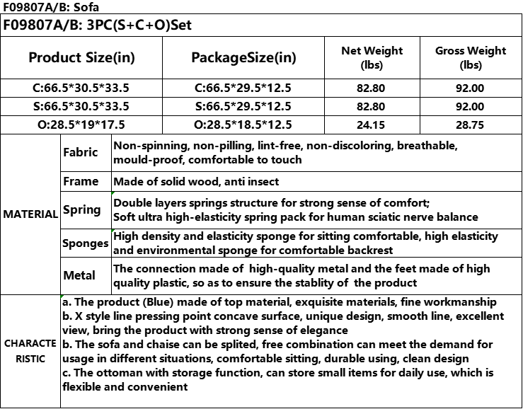 Pickup Only-----Blue Linen 3-Piece Living Room Sofa Set