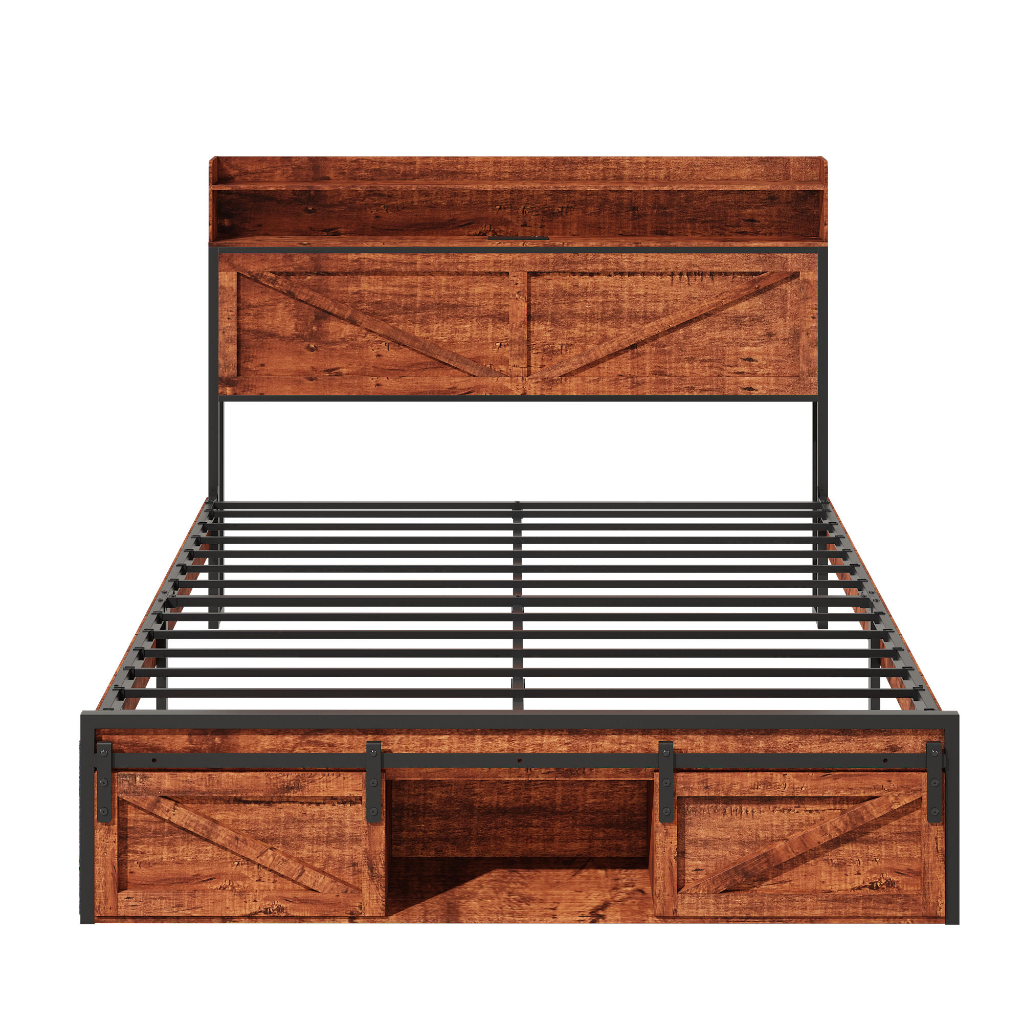Product Name:Queen-size Bed Frame with Storage Headboard, Footboard Storage Compartments and LED Lighting, Equipped with Anti-slip & Noise-free Mattress-support Metal Platform and Robust Metal Slat Support, Brown