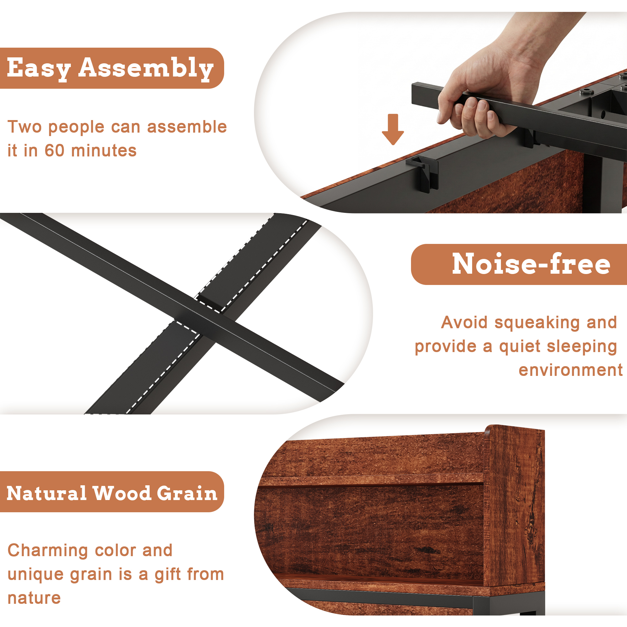 • Queen-size bed frame with anti-slip, noise-free metal platform for mattress support; sturdy metal slat base – no box spring required