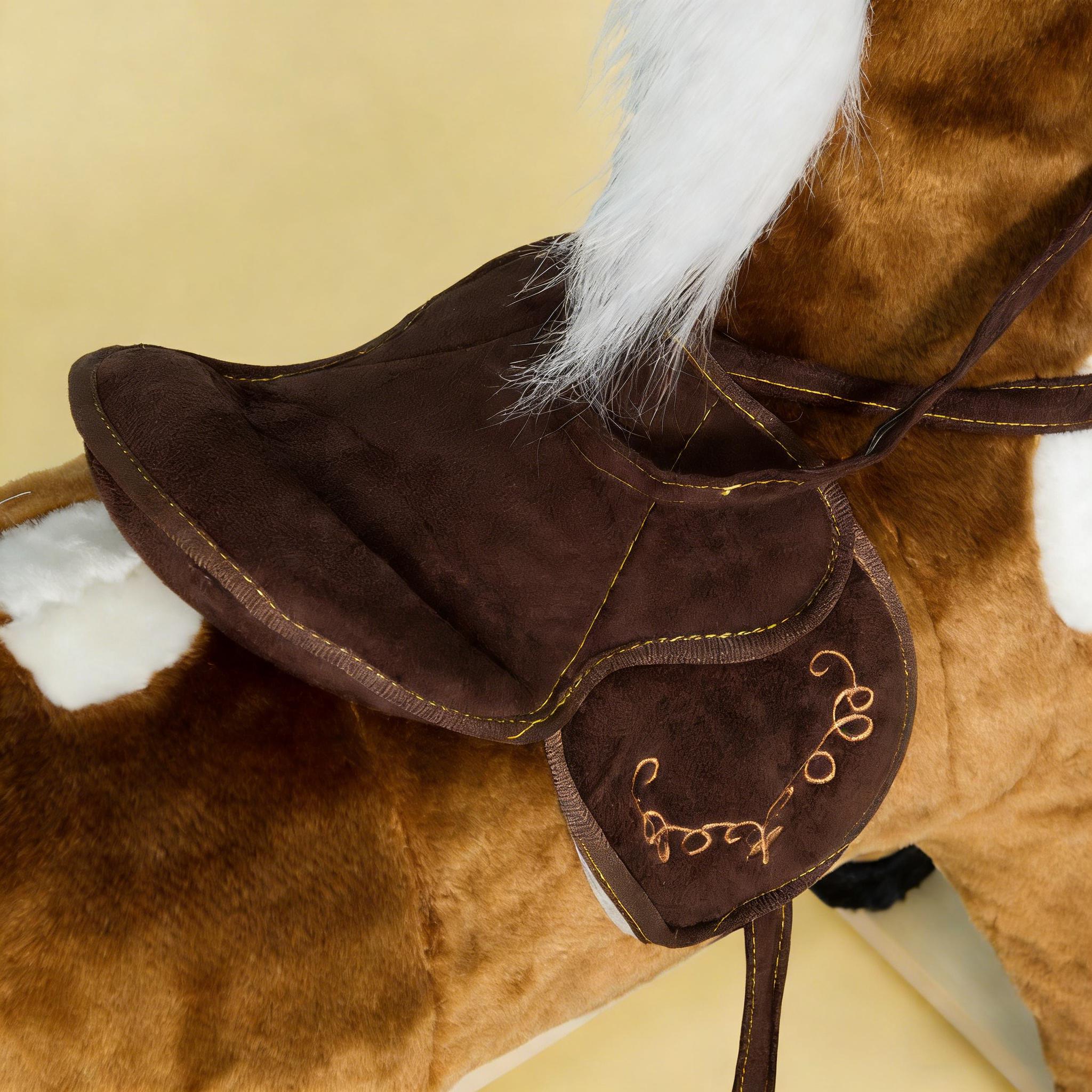 • - Soft Huggable Plush Body: A softly padded polyester plush body and comfortable riding saddle recreate the look and feel of thrilling horseback riding adventures.