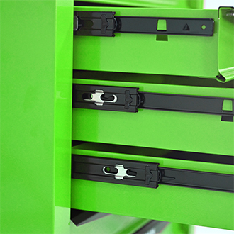• The opening and closing of the drawers of the tool cabinet is very gentle thanks to the ball-bearing drawers