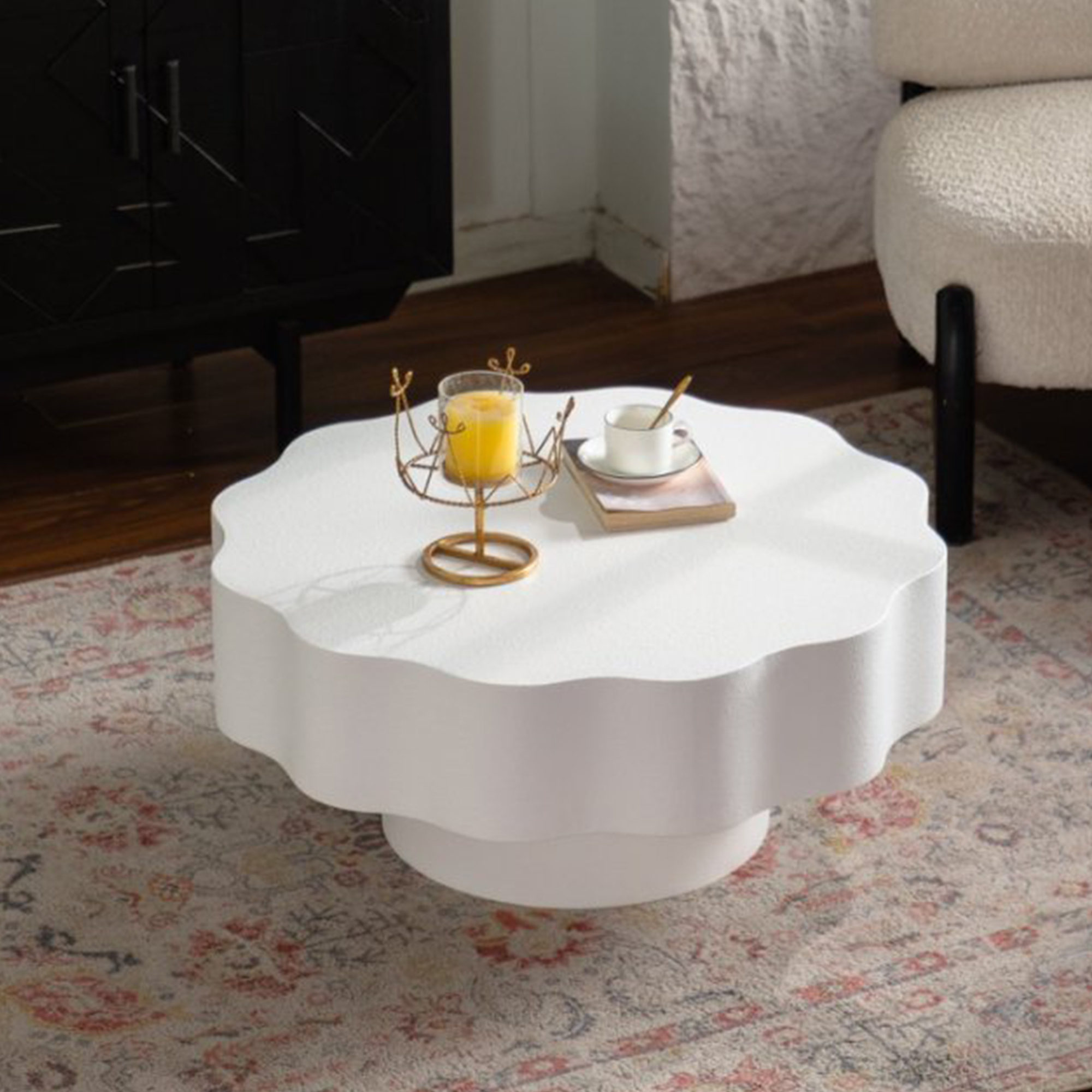 Product Name:Scalloped White Coffee Table: Unique Wave-Edge Shape, Elegant Focal Piece for Stylish Spaces.