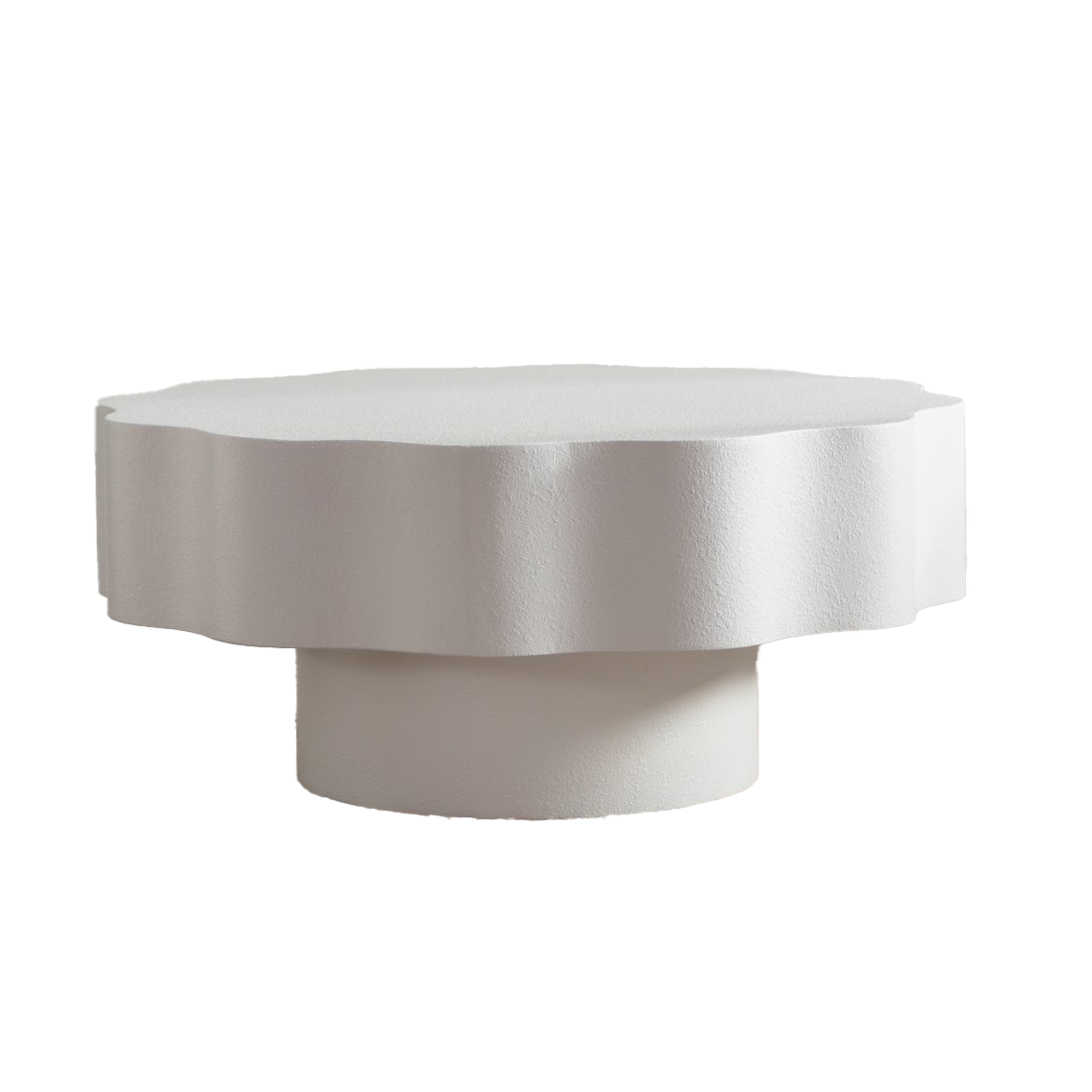 Scalloped White Coffee Table Unique Wave-Edge Shape, Elegant Focal Piece For Stylish Spaces.