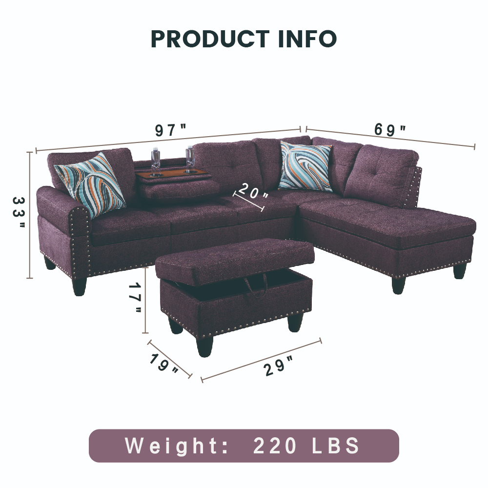 Home > Self-pickup Only--Amaranth Linen 3-Piece Sofa Set Living Room Sofa