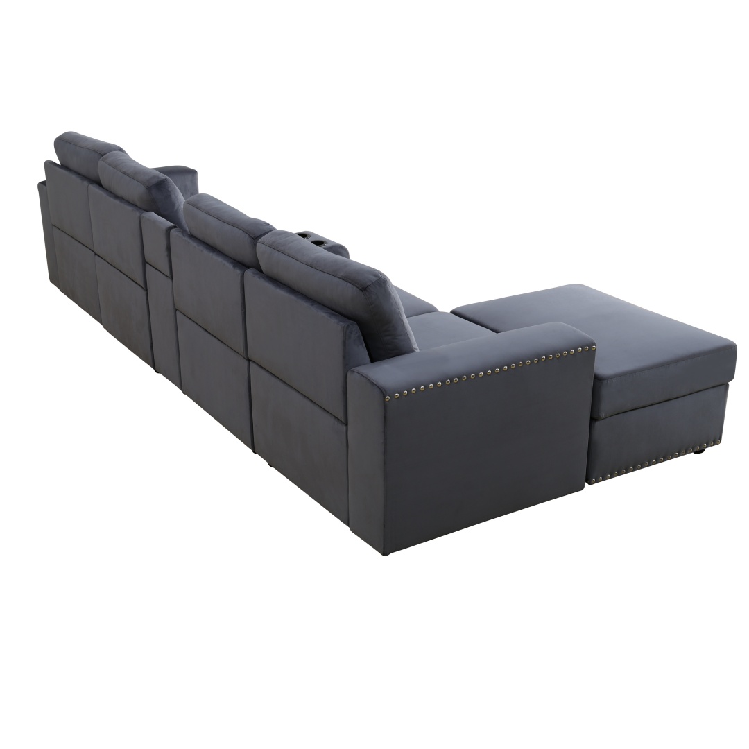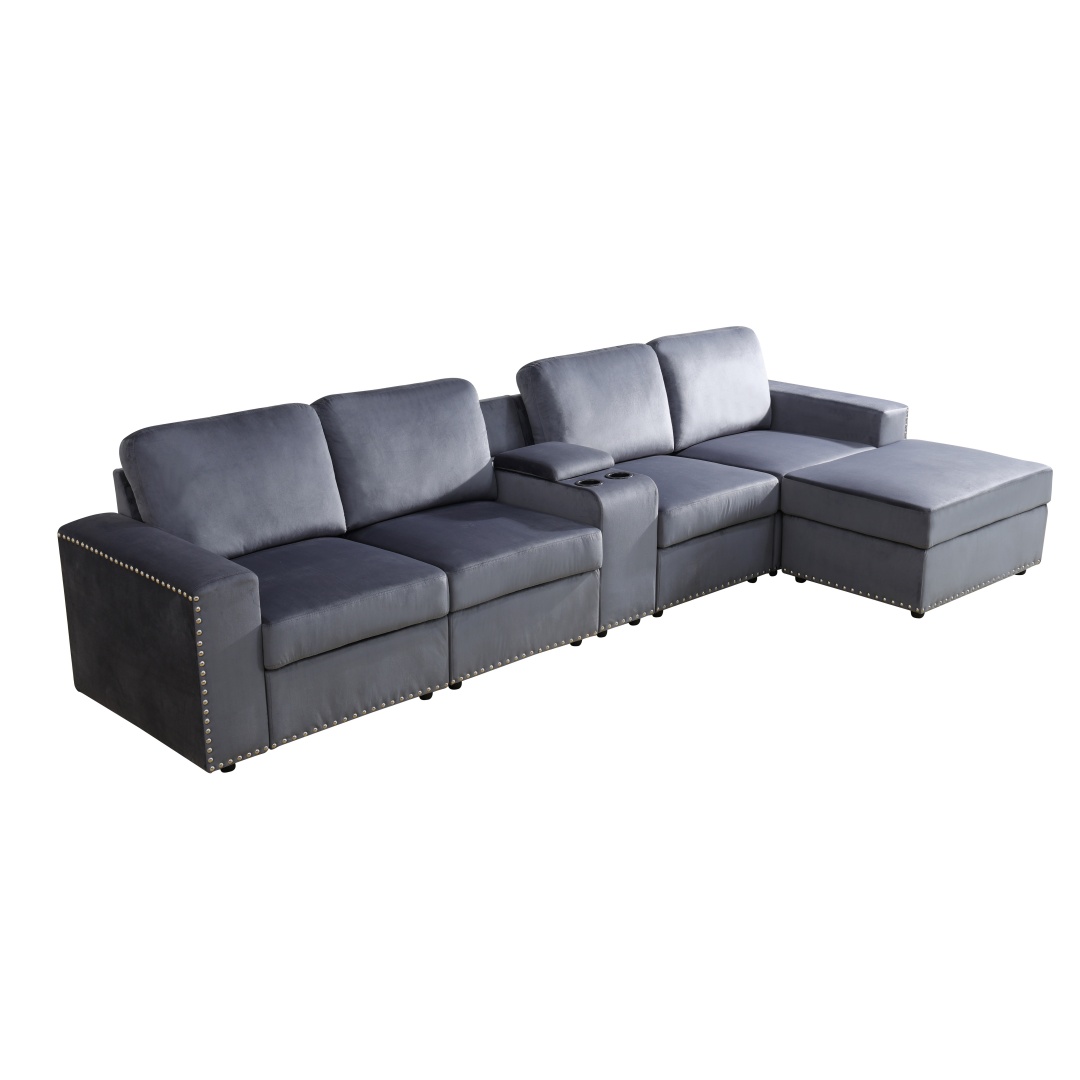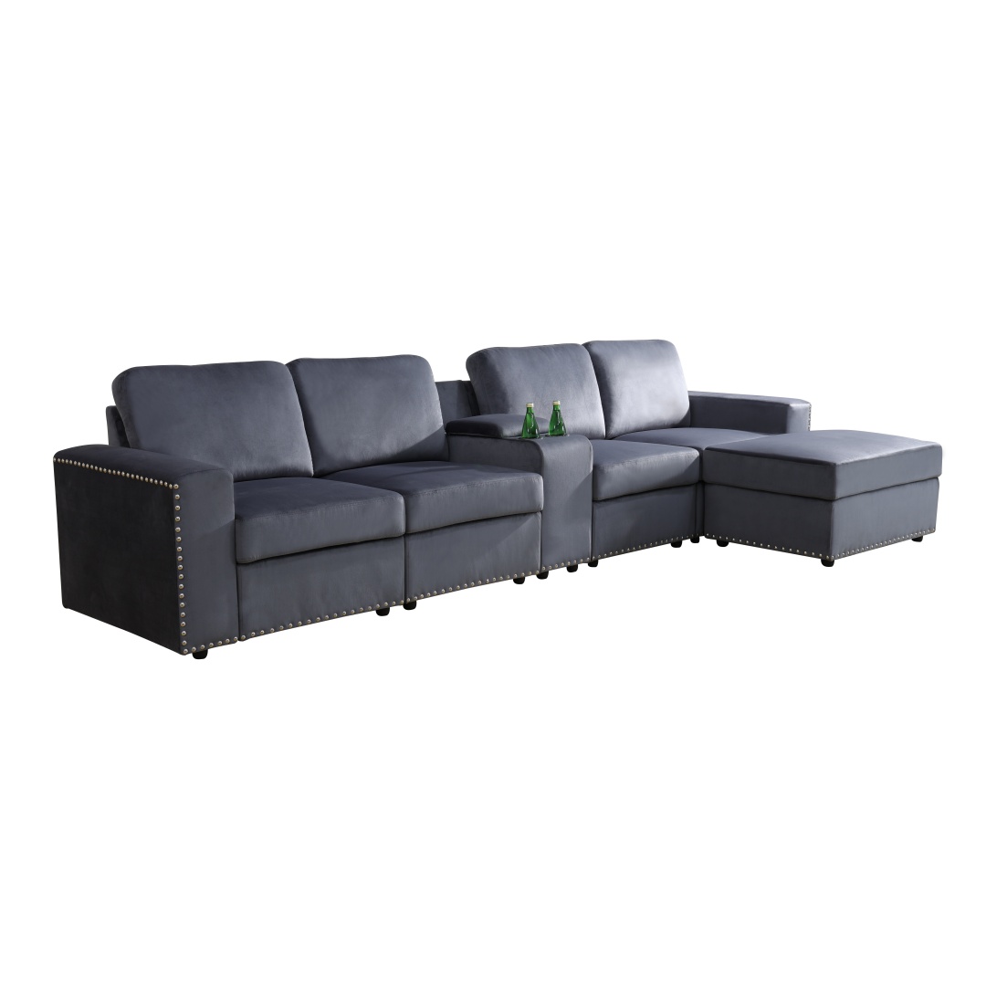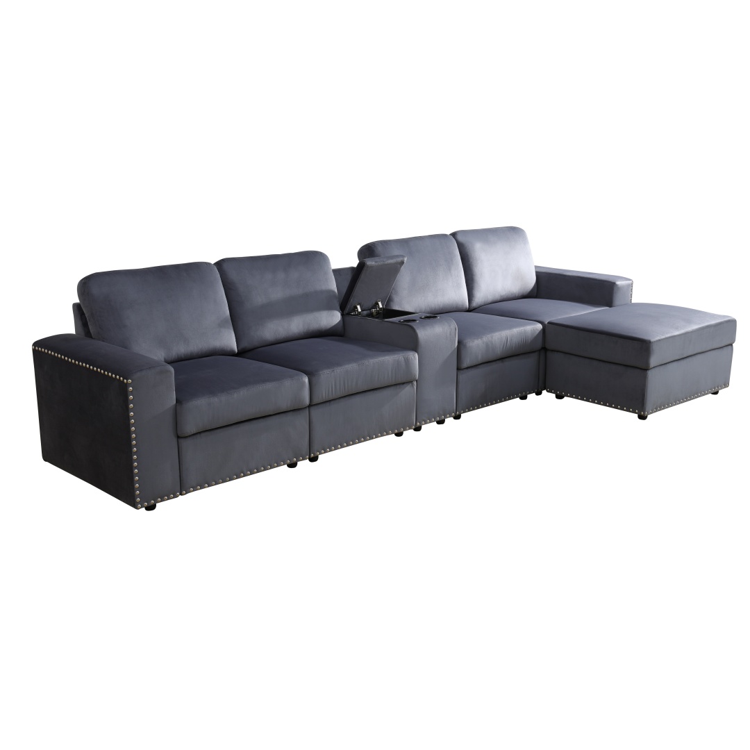 Home > Self Pickup Only--Dark Grey Microfiber 6-Piece Living Room Sofa Set
