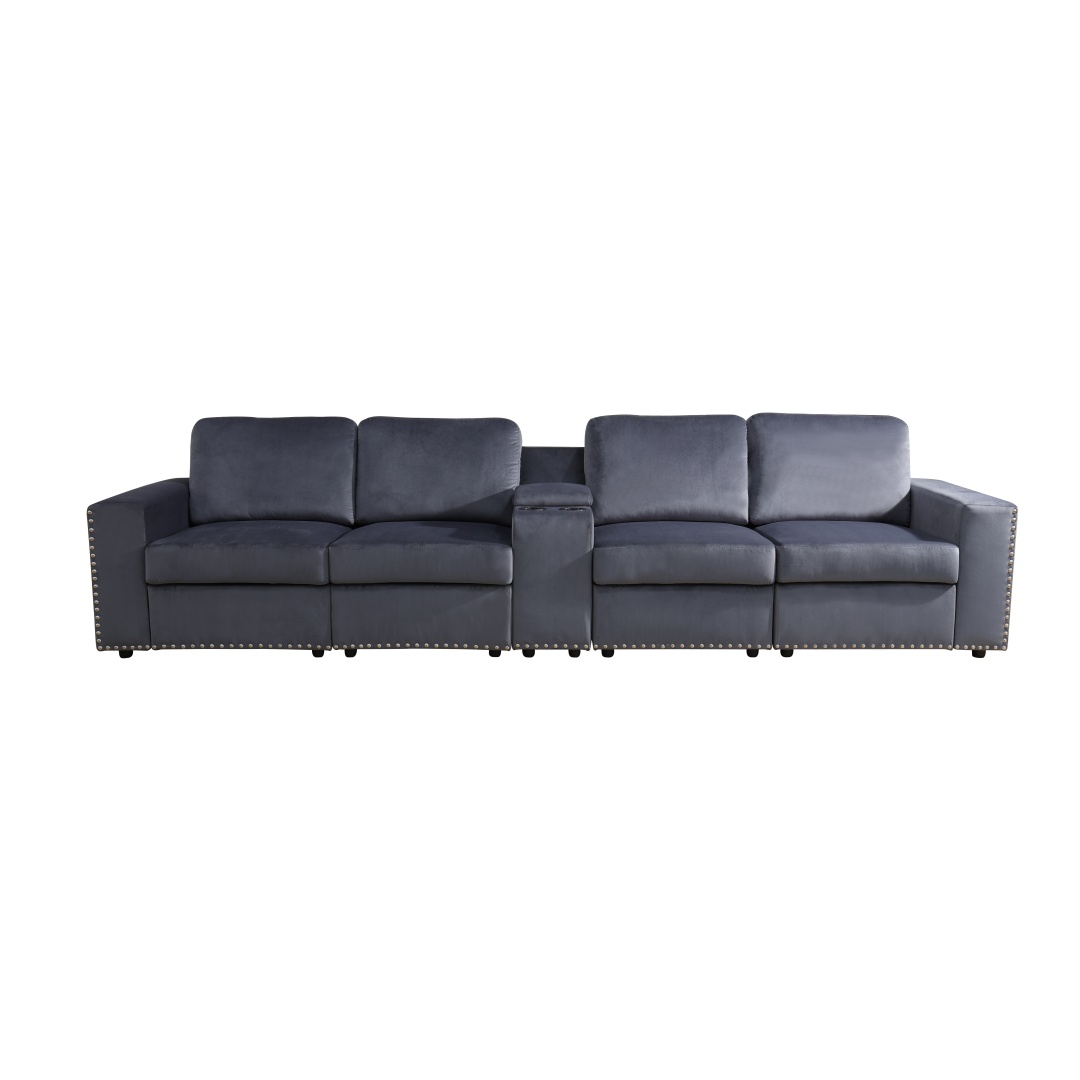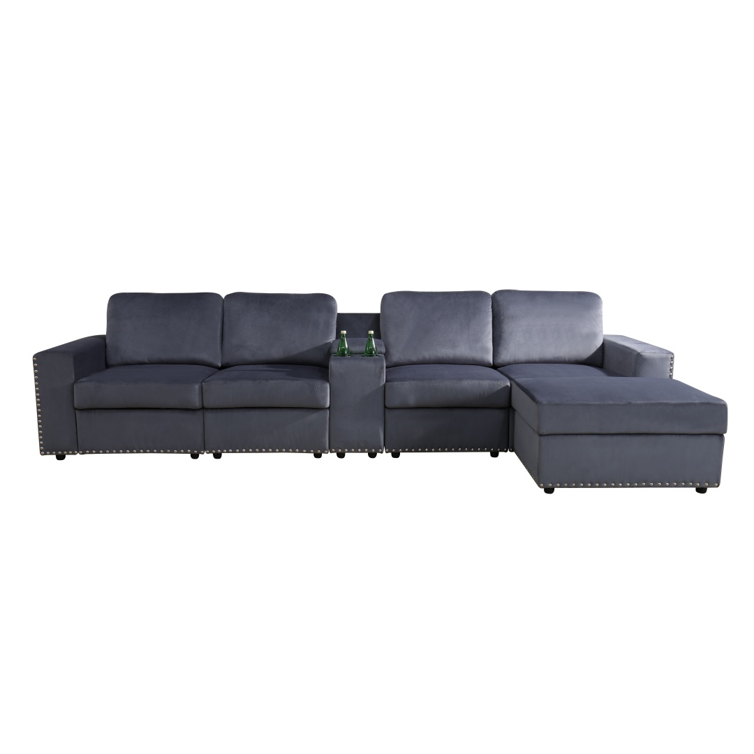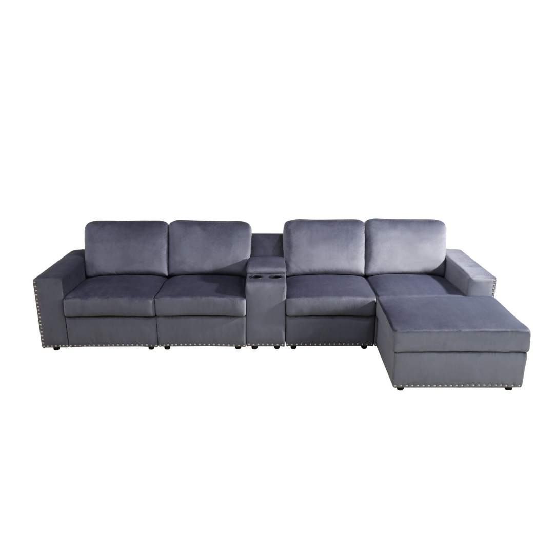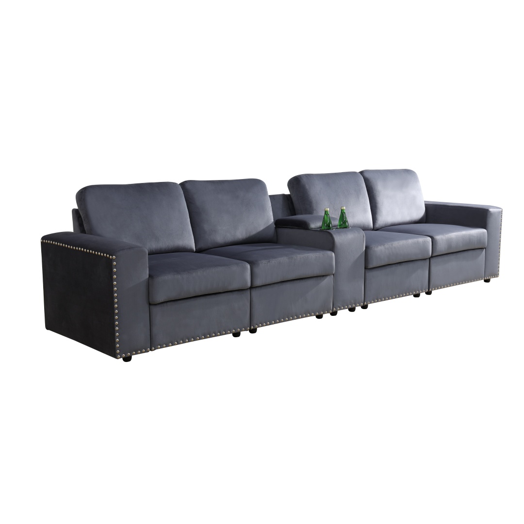 Home > Self Pickup Only--Dark Grey Microfiber 6-Piece Living Room Sofa Set