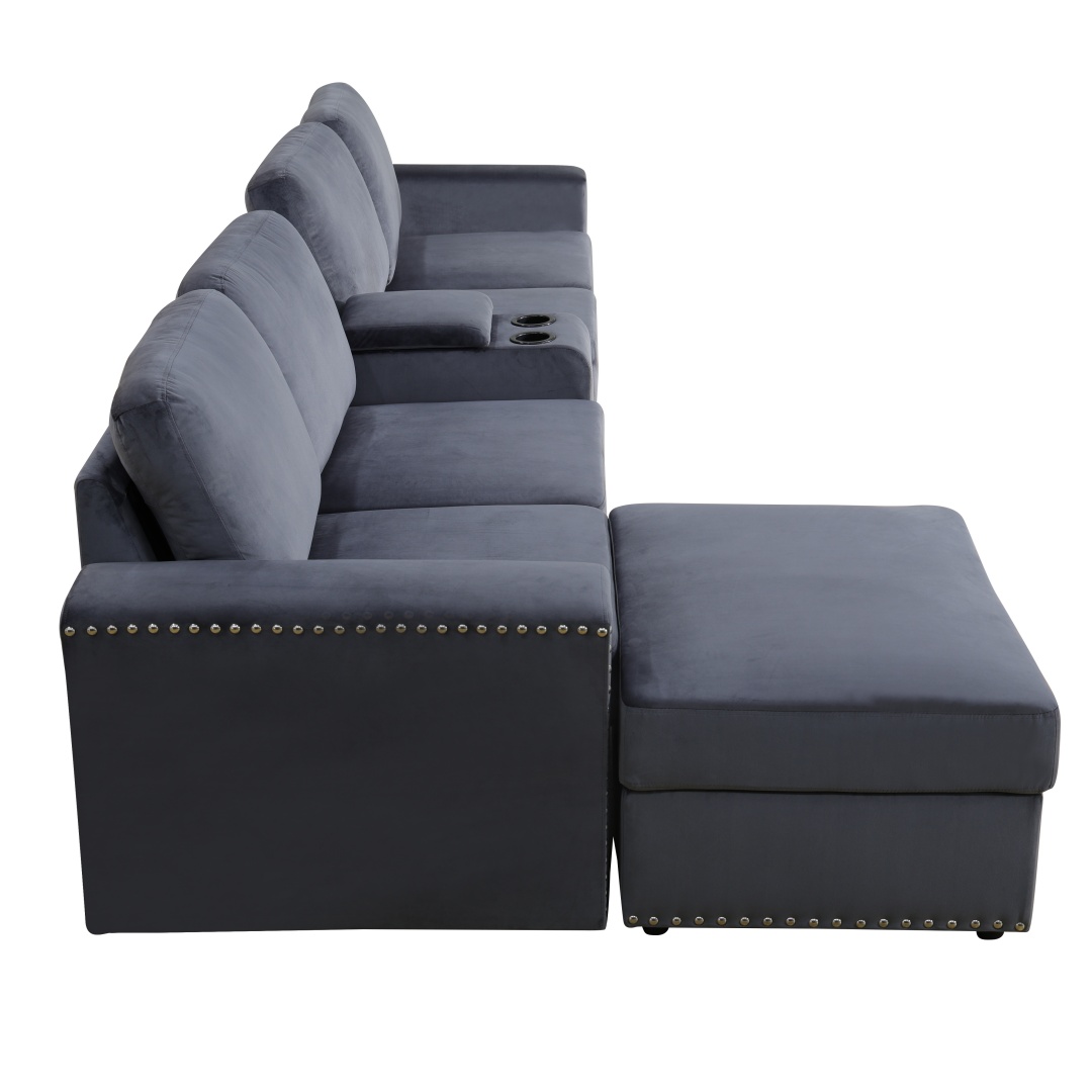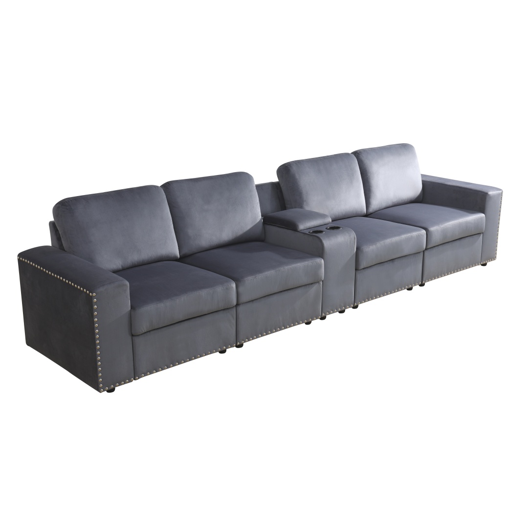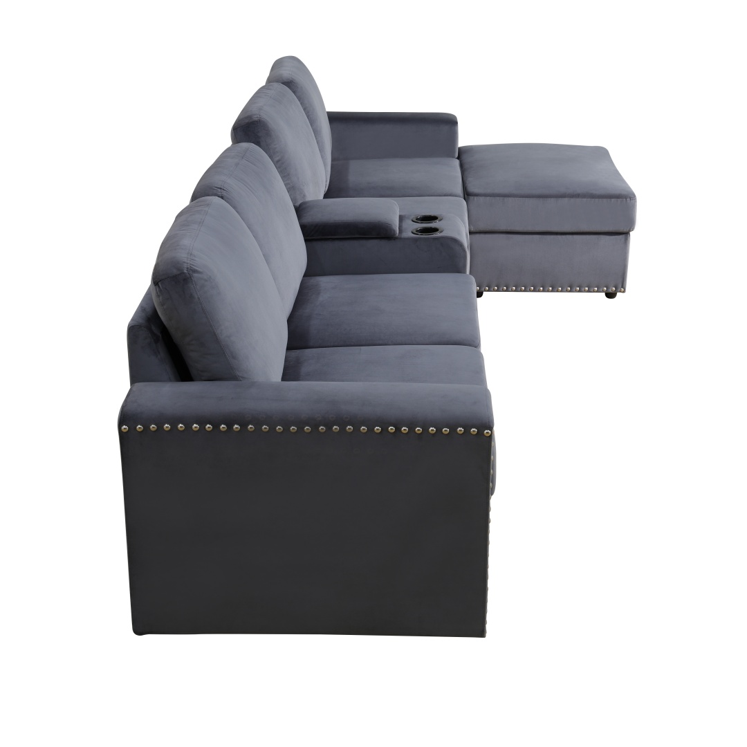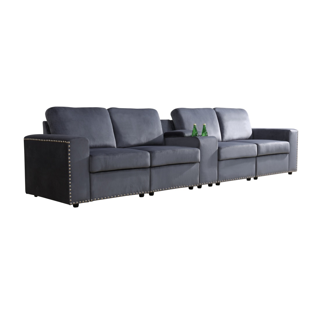 Home > Self Pickup Only--Dark Grey Microfiber 6-Piece Living Room Sofa Set