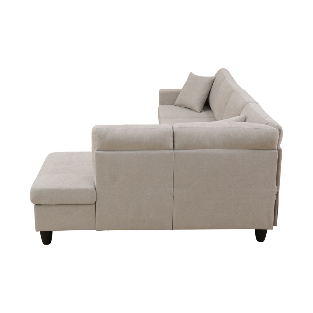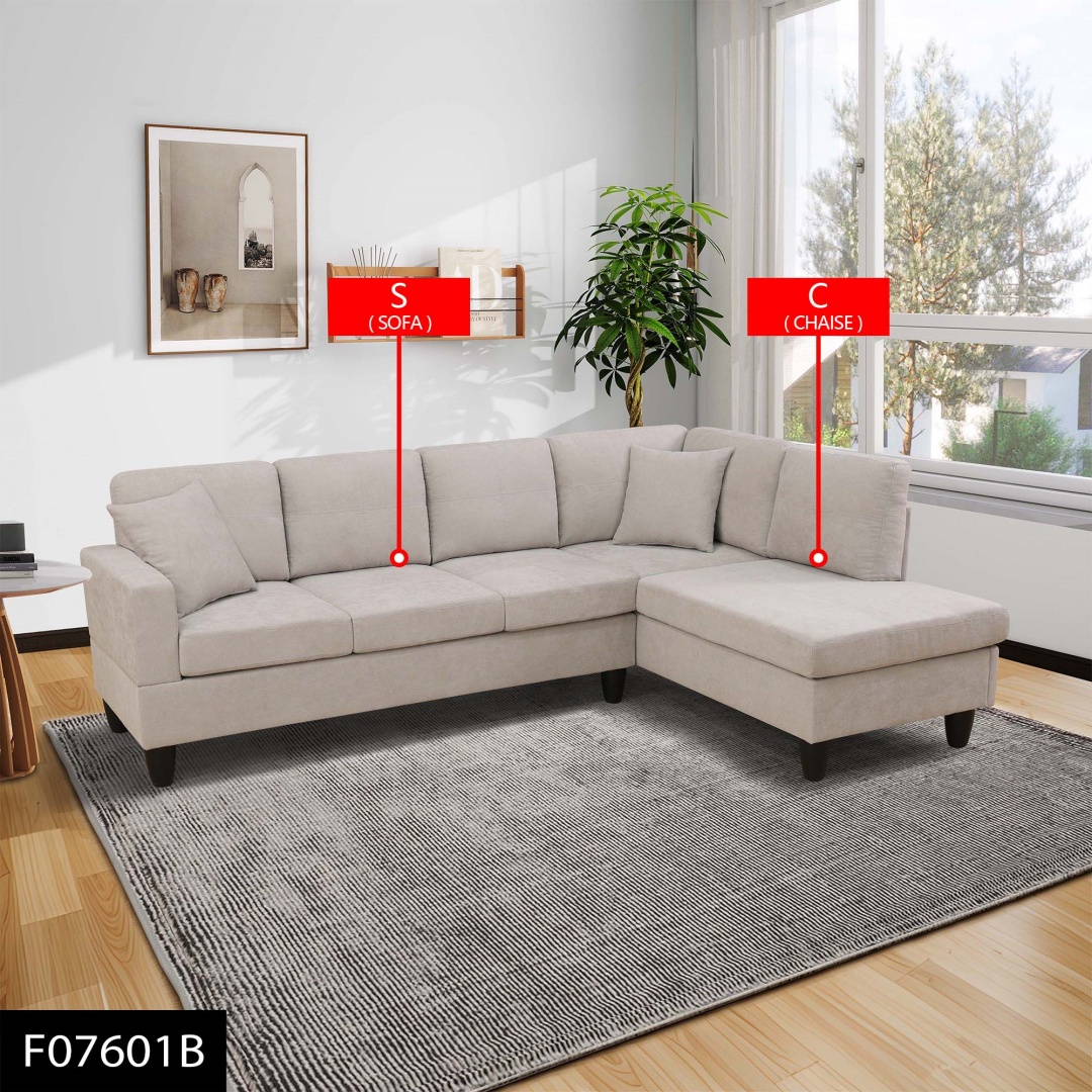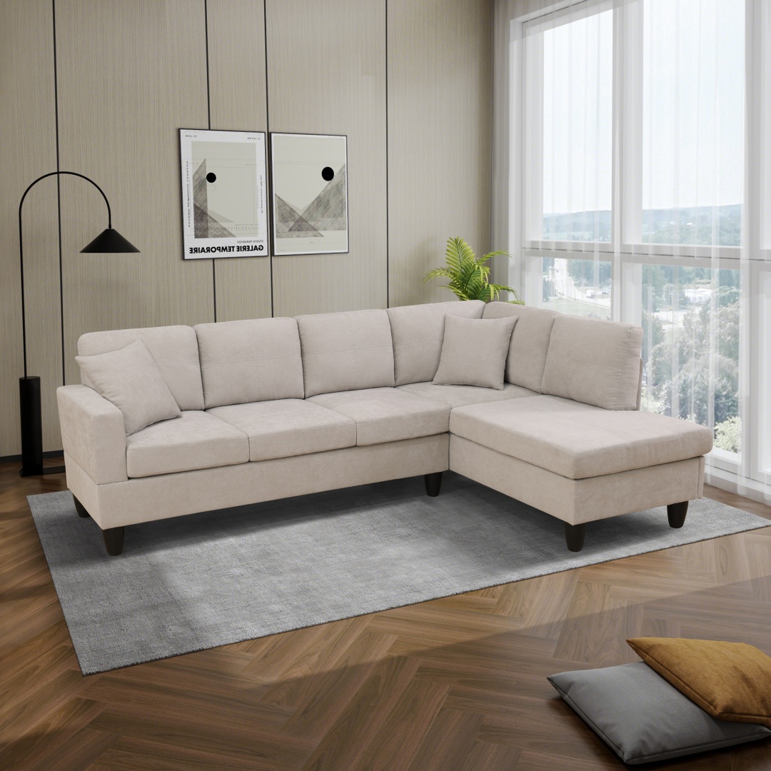 Home > Self-pickup Only--Off-White Short Fur Fluffy Fabric 2-Piece Right Side L-Shaped Living Room Sofa Set