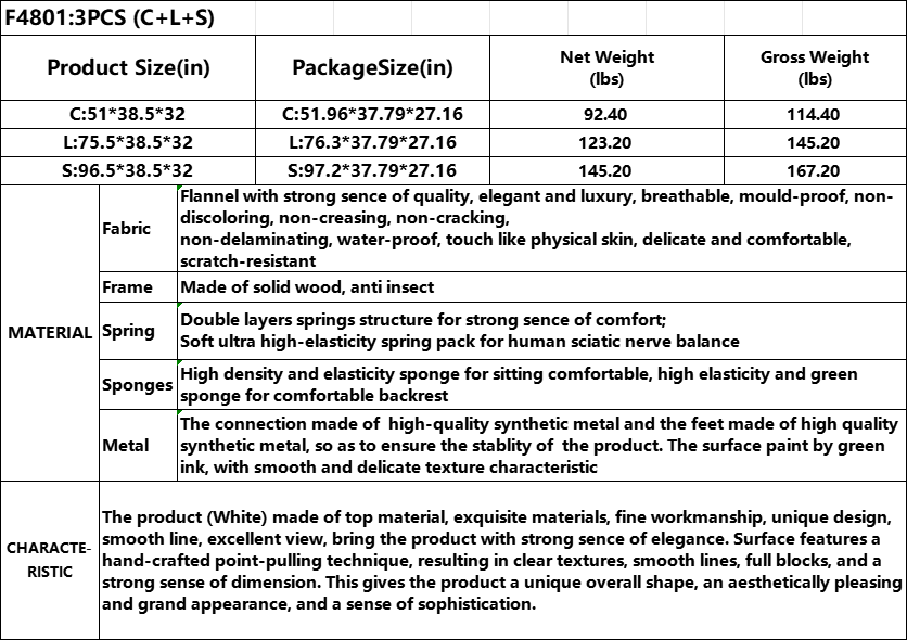 Self-pickup Only--White Flannel 3-Piece Living Room High-end Sofa Set
