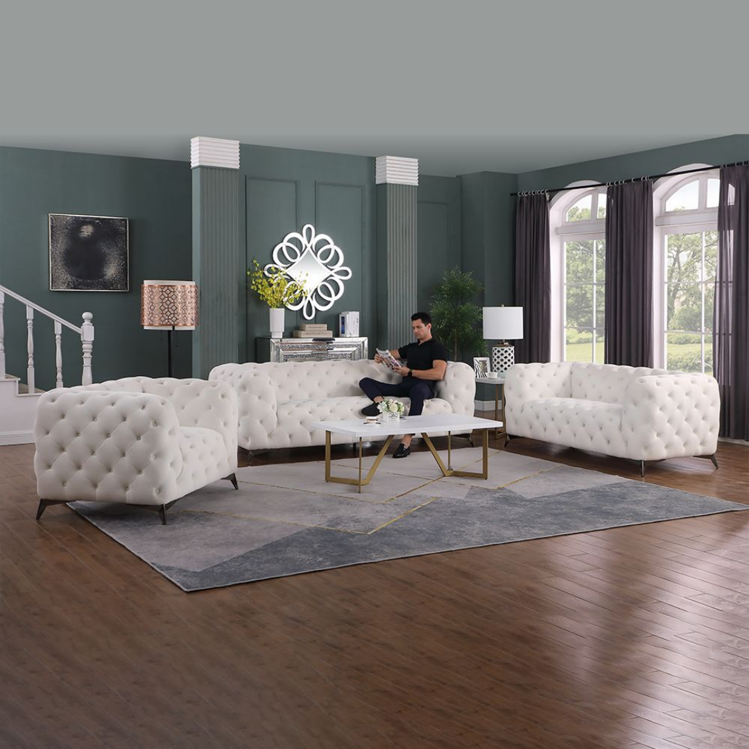 Home > Self-pickup Only--White Flannel 3-Piece Living Room High-end Sofa Set