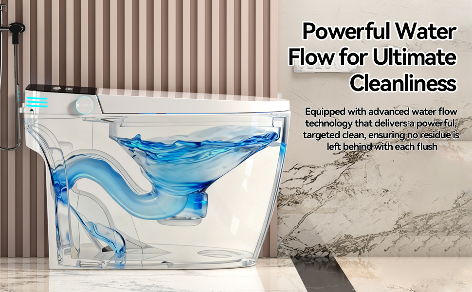 • Utilizing Siphonic jet, our smart toilet combines siphoning and jet flushing to reduce waste accumulation and maintain cleanliness. The built-in battery design ensures normal flushing even during power outages