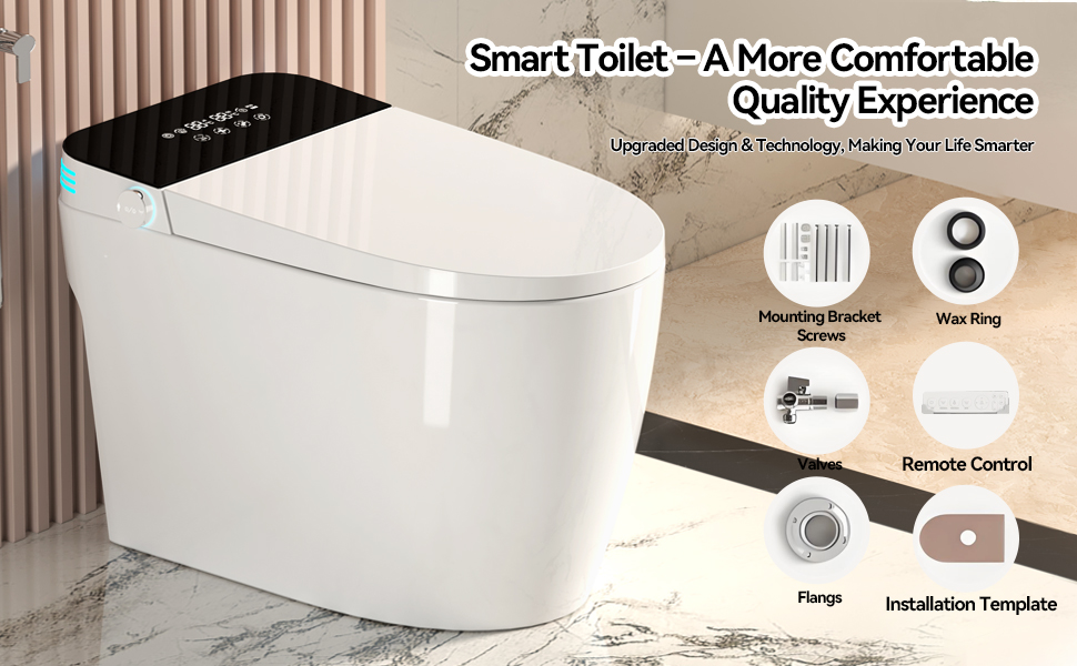• Designed for comfort and convenience, our smart toilet offers instant warm water, warm air drying, night light, heated seat, LED display, seat temperature adjustment, auto flush, remote control , enhancing the overall user experience.