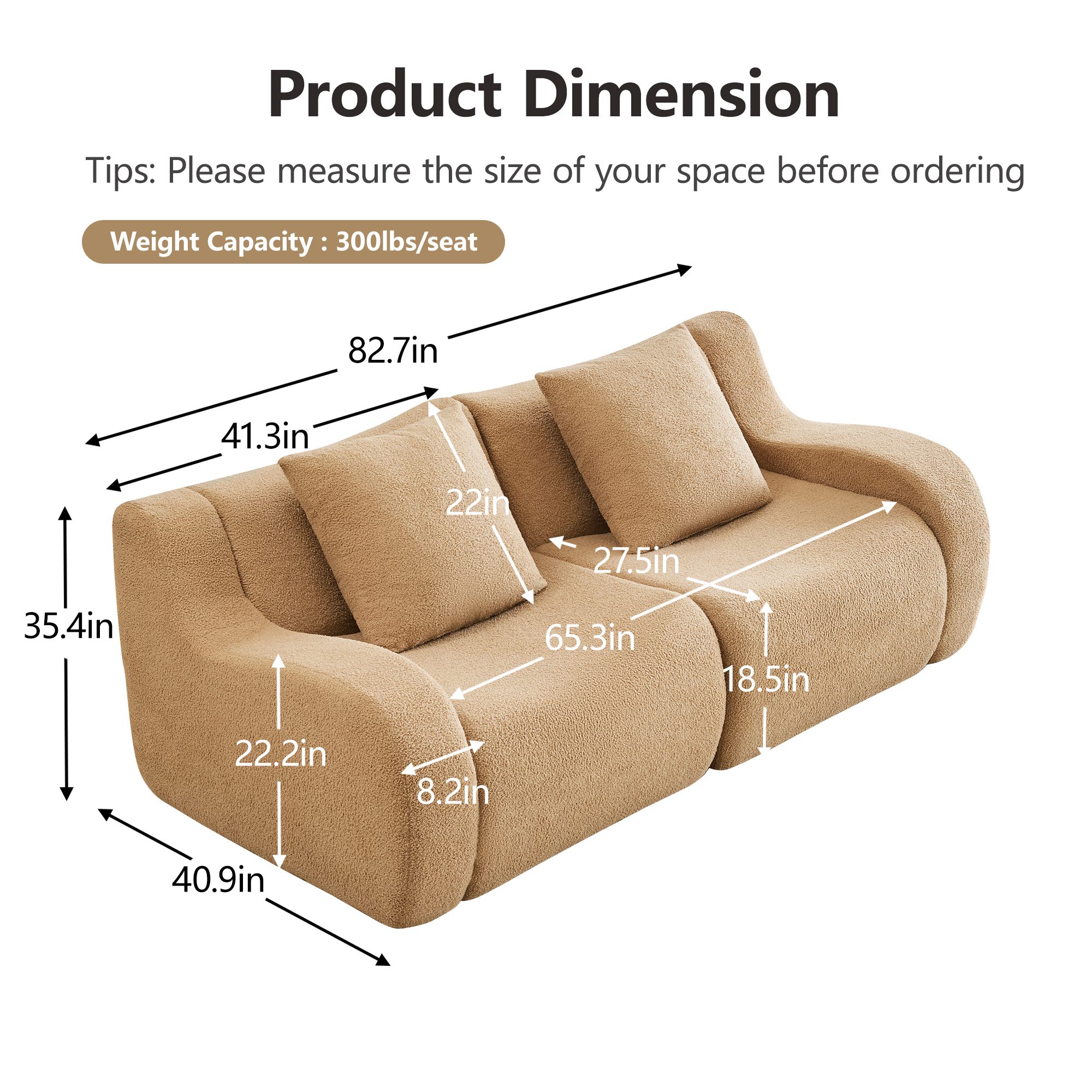 Product Name:Soft Teddy Fabric Boneless Sofa,No Assembly Required Streamlined Design,Anti-Slip Design 32D High Density Sponge Fits Living Rooms Bedrooms,Camel