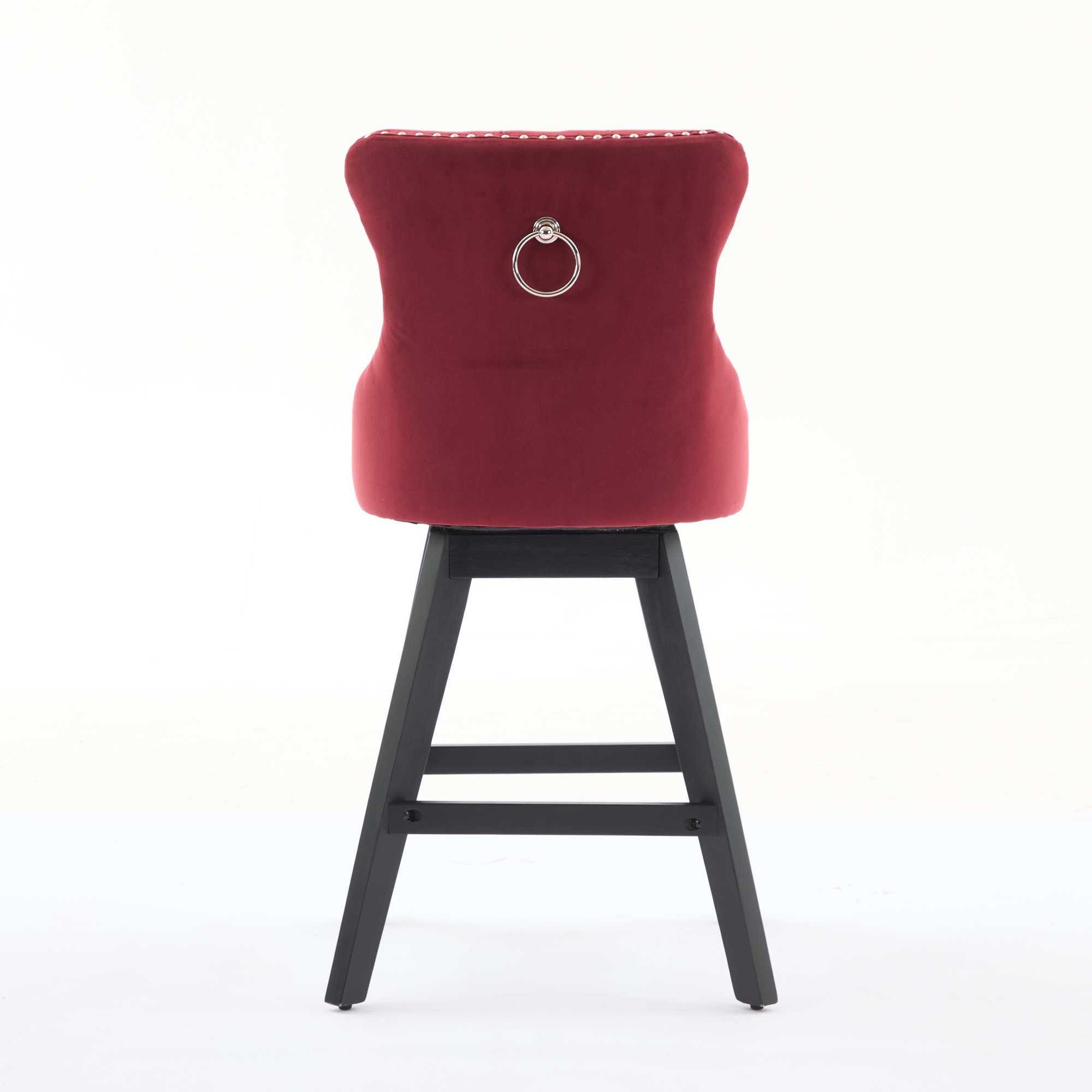 Product Name:Swivel Velvet Barstools with Button Tufted Decoration and Wooden Legs, and Chrome Nailhead Trim, Leisure Style Bar Chairs,Bar stools, Set of 2 (Wine Red),SW1860WR