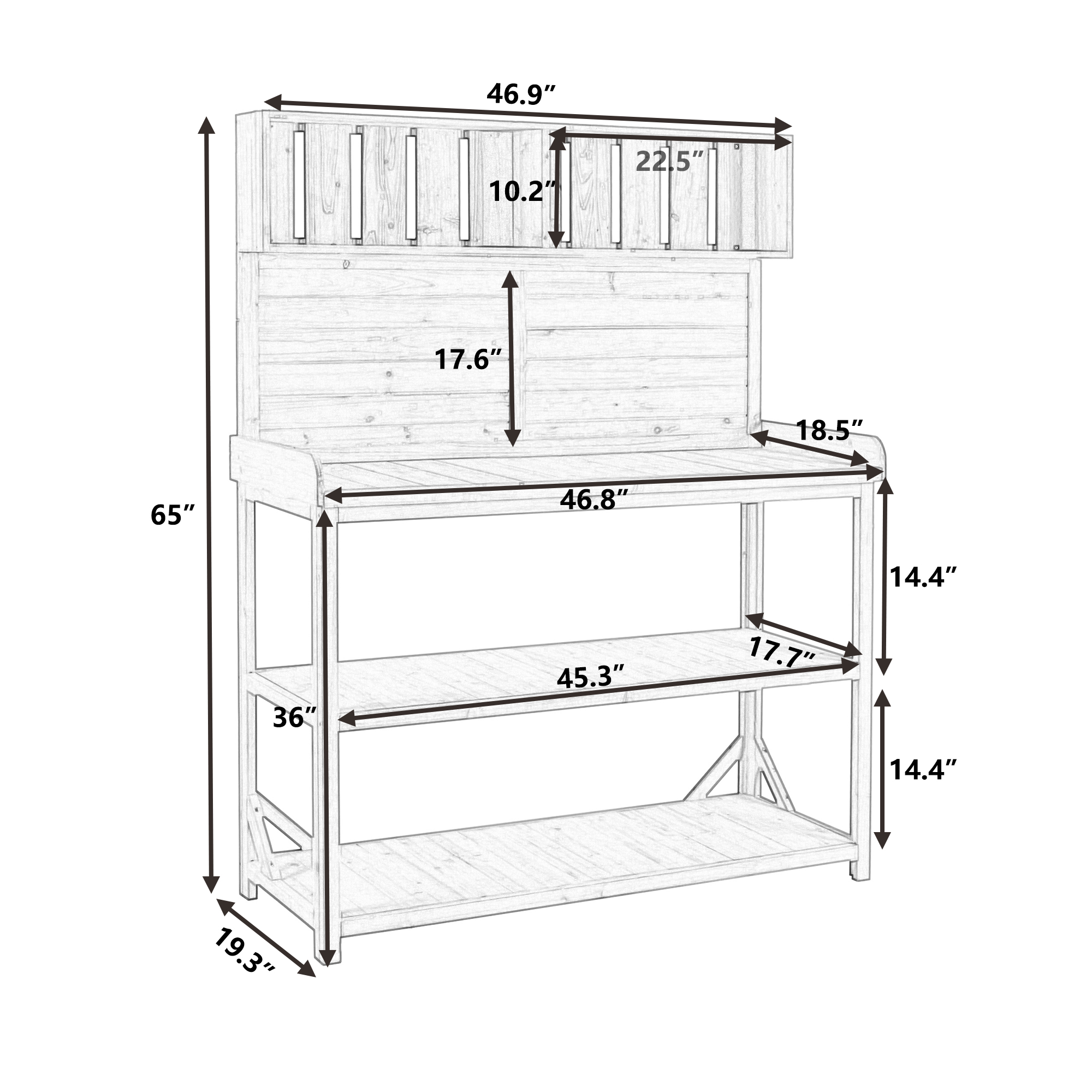 • [Spacious Workstation] Who's ready for Spring? Get a little bit of inspiration for the coming season from this farmhouse garden potting bench. Made of 100% fir wood, this table is sturdy enough for outdoor using with its 46.8x18.5inch workstation. Compared with other potting bench, its surface is spacious for putting many tools or planters from your loved garden.