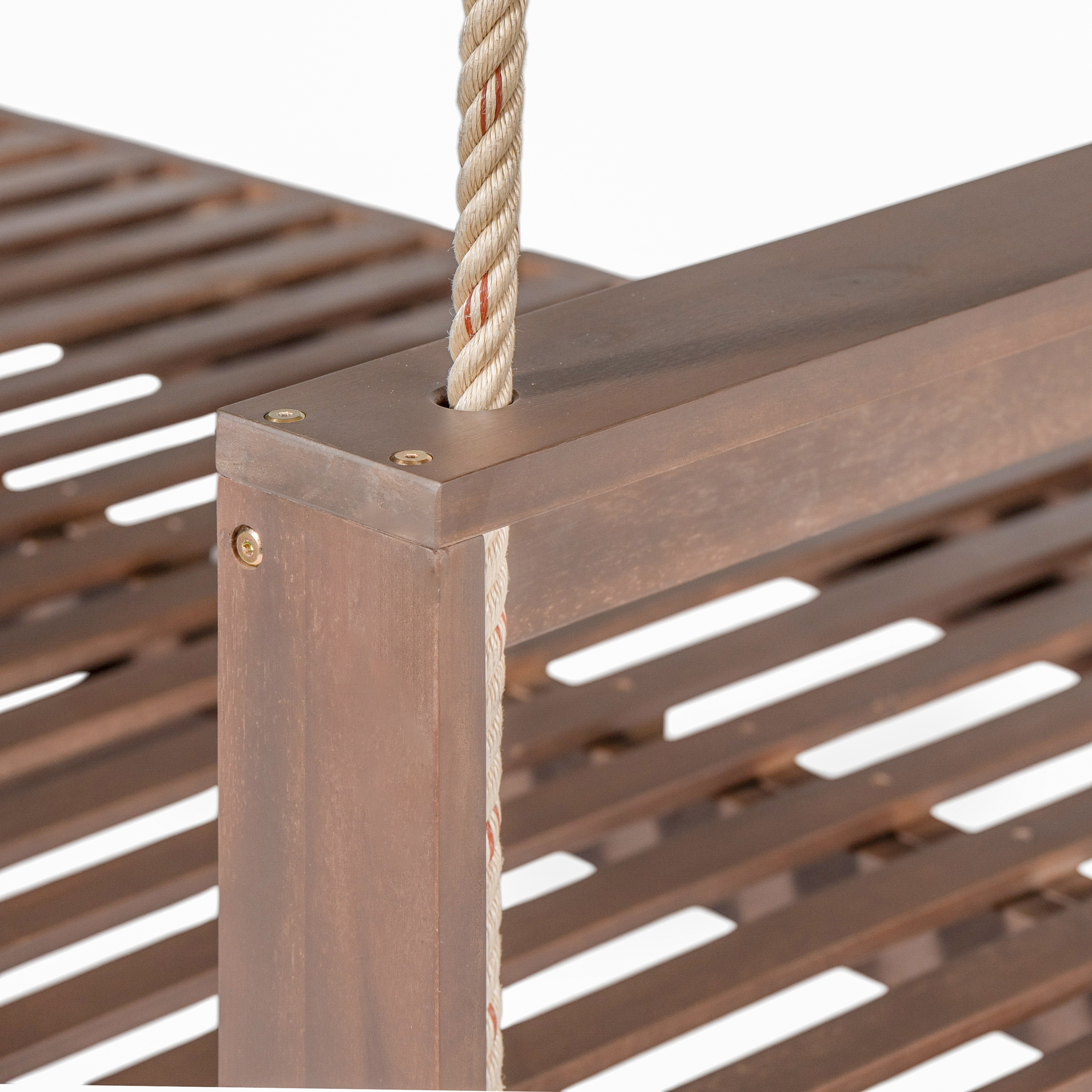 • [Elegant Acacia Wood Craftsmanship] Crafted from premium Acacia wood, this swing bed exudes timeless elegance and durability. Its rich, natural finish with painted coatings complements any décor while offering the strength to last for years. The high back and two arms provide a serene, supportive seating experience, perfect for unwinding with a book or enjoying a peaceful sunset.
