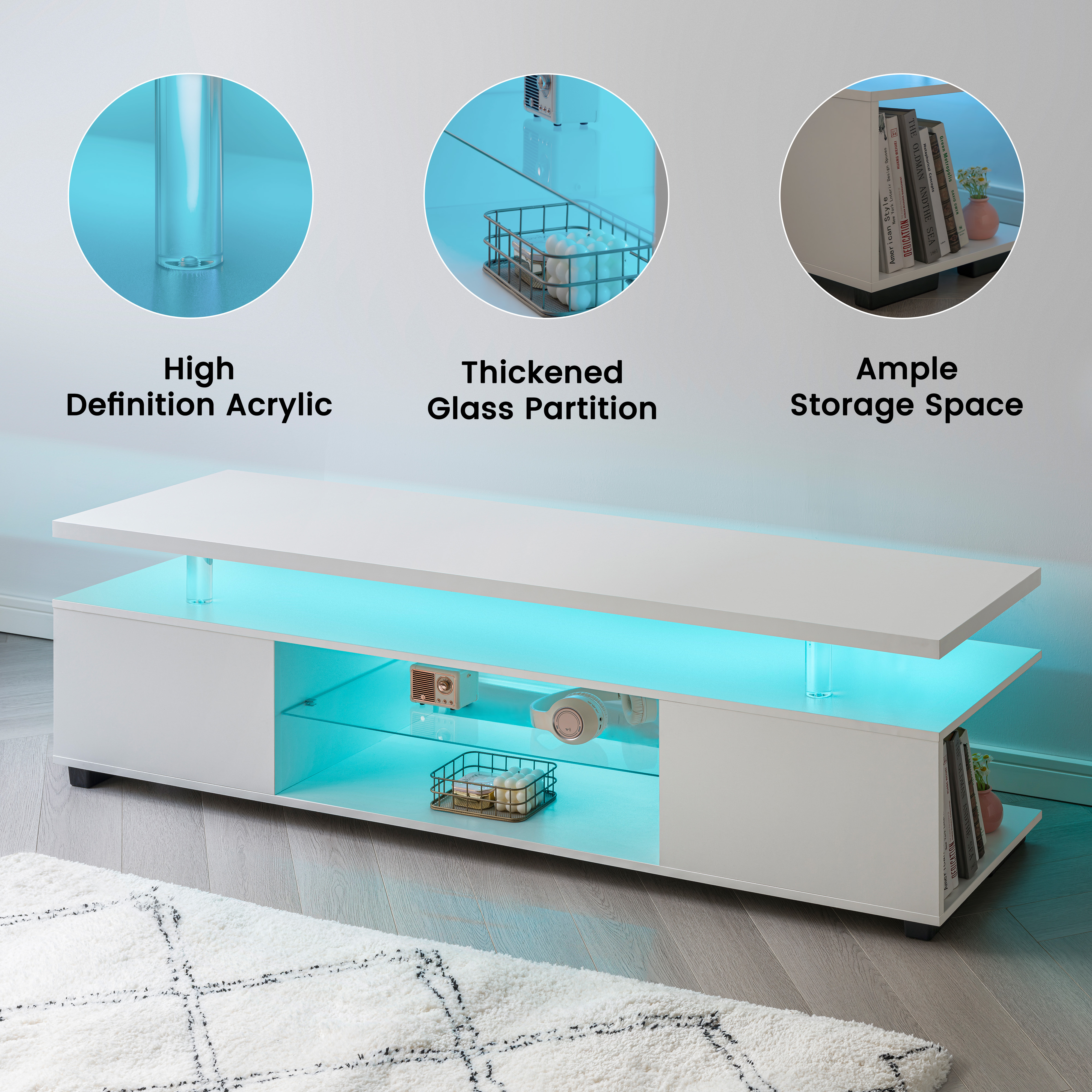 TV Stand For 60 Inch TV LED Gaming Entertainment Center Media Storage Console Table With Large Side Cabinet For Living Room White