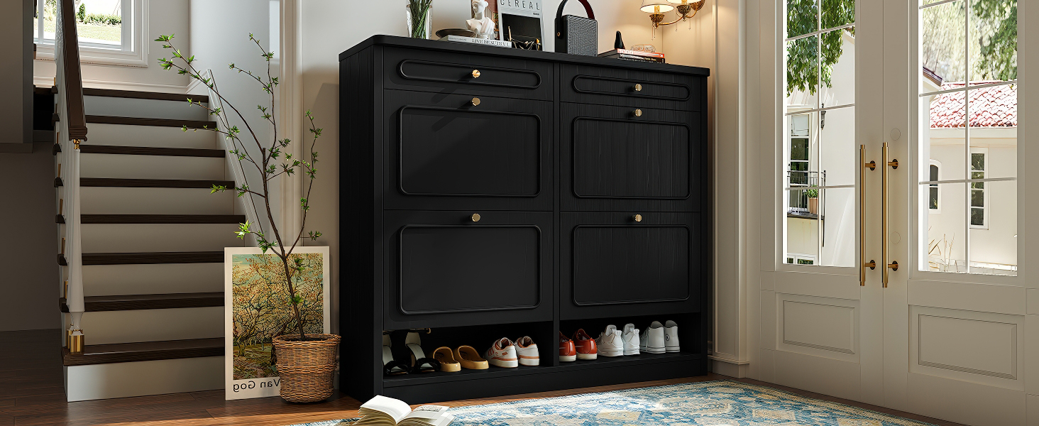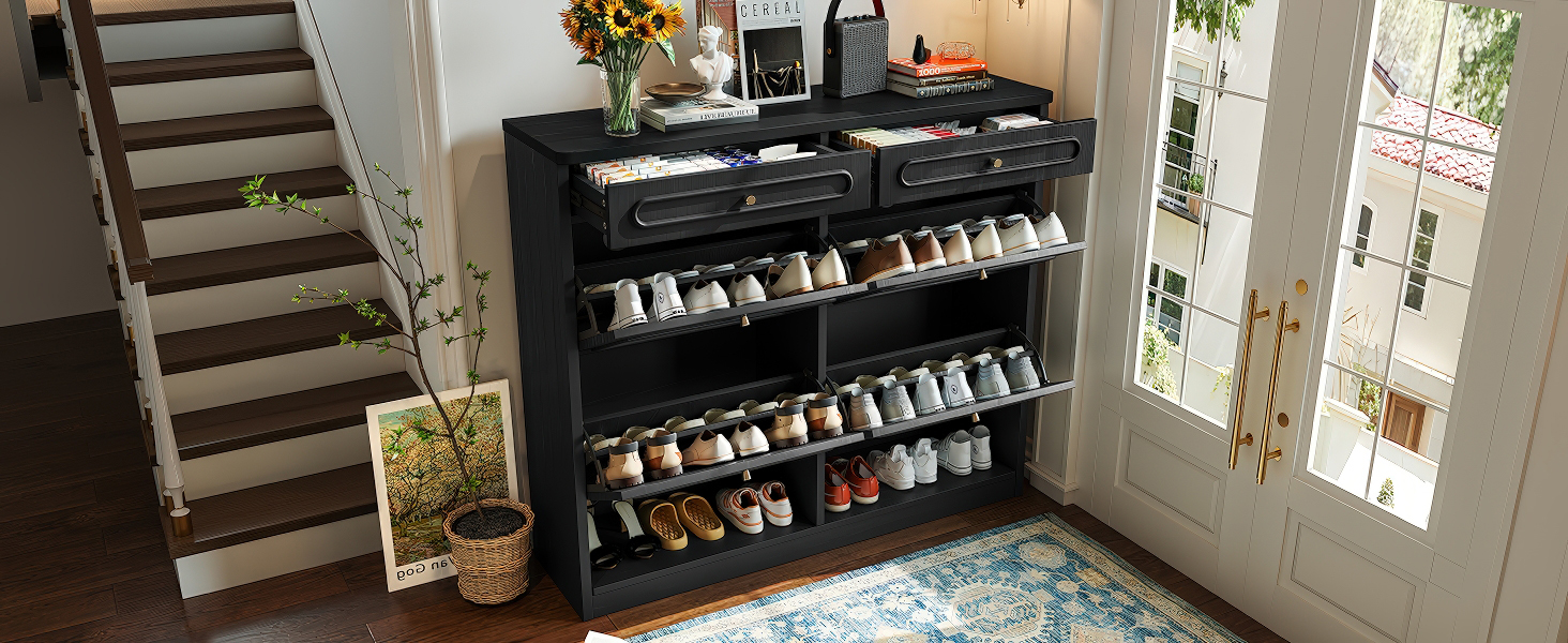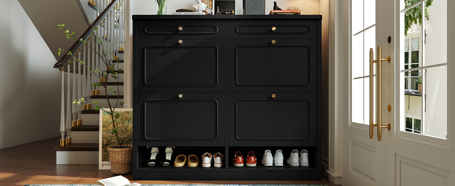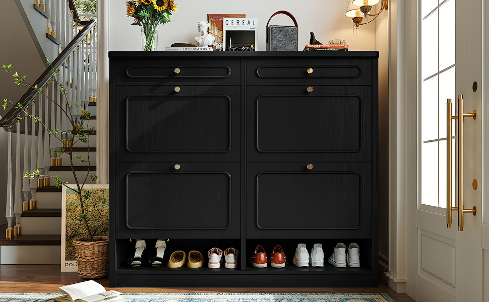 Product Name:Wooden Shoe Cabinet with 4 Flip Drawers,Shoes Rack Cabinet with 2 Storage Drawers,Classified Storage and Farmhouse Style, Black